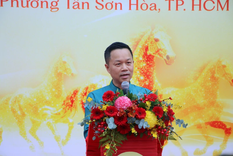 Ông Nguyễn Đức Quỳnh, Tổng Giám đốc Menas Group phát biểu tại sự kiện đường hoa Menas số 60A Trường Sơn.