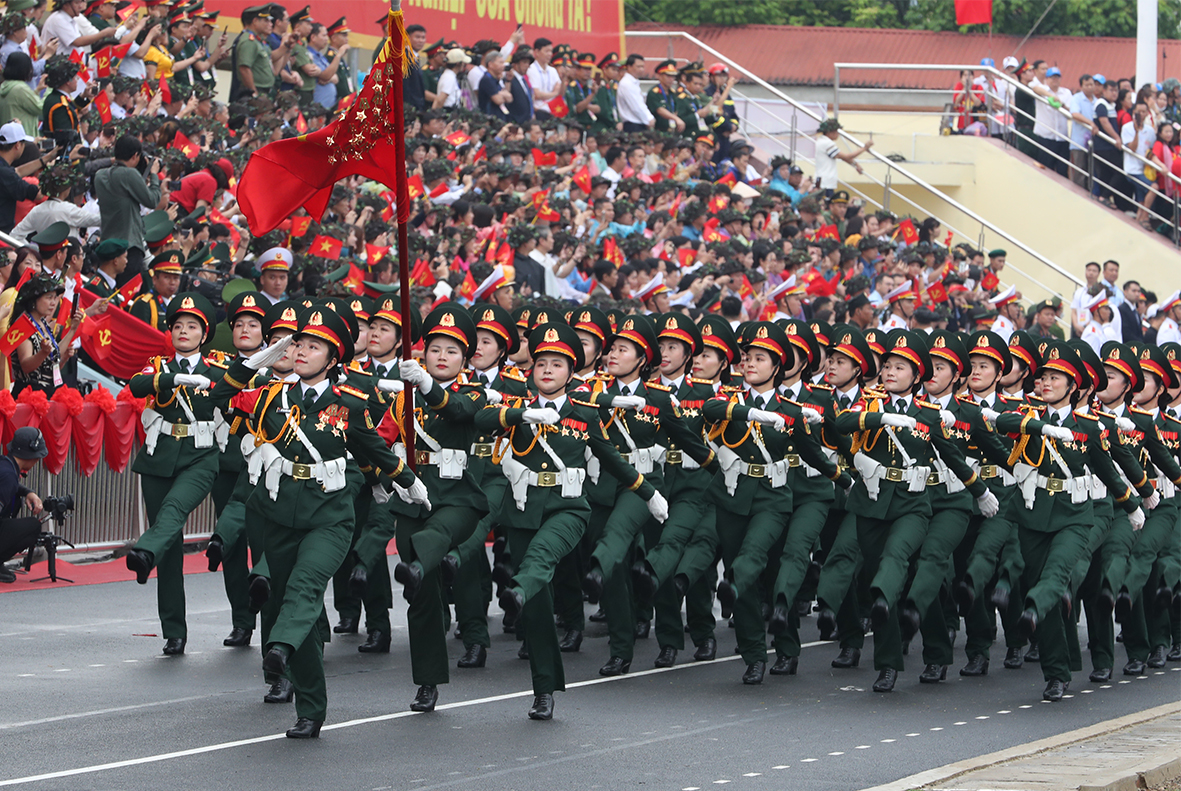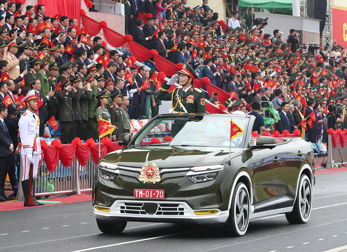 Trung tướng Nguyễn Trọng Bình, Phó Tổng Tham mưu trưởng Quân đội nhân dân Việt Nam chỉ huy, dẫn đầu các khối đại diện cho lực lượng Quân đội nhân dân và Dân quân tự vệ tham gia diễu binh.