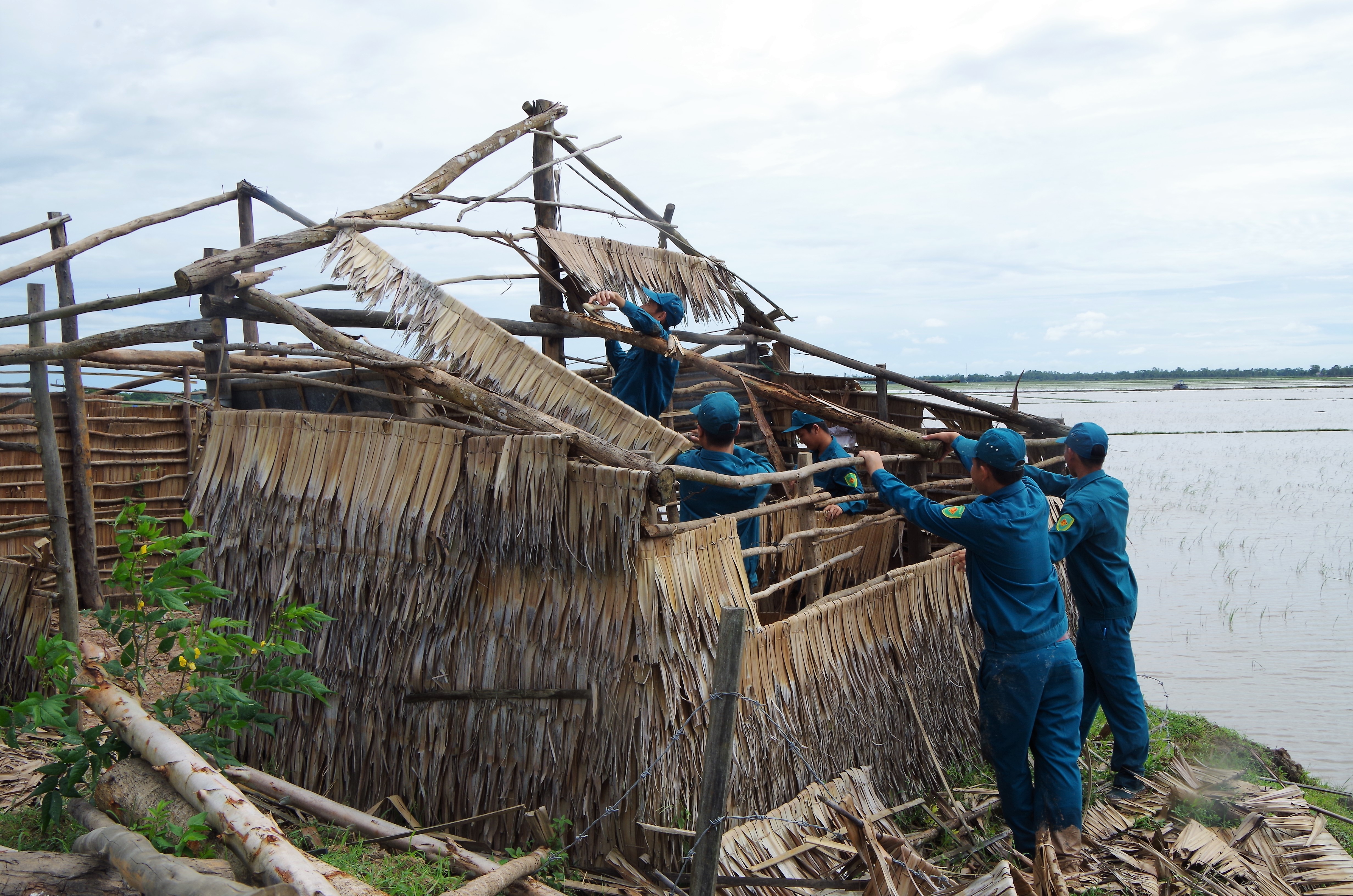 Trong những ngày mưa bão vừa, qua lực lượng dân quân tất bật với công việc giúp dân sửa chữa 9 căn nhà bị giông lốc làm sập, gia cố đê bao chống lũ, rải sỏi đỏ tuyến đường ấp Đá Biên.