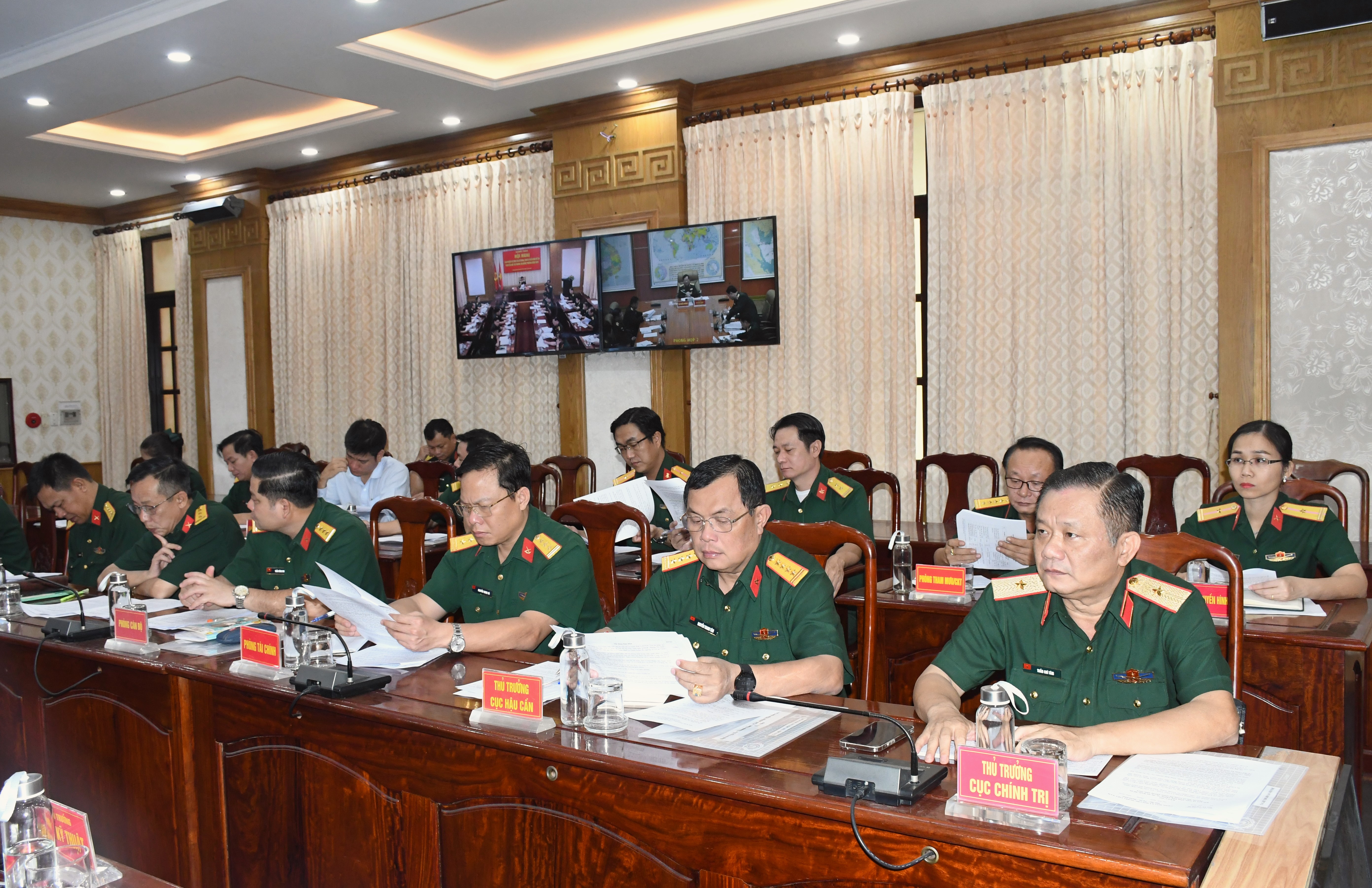 Thủ trưởng cơ quan Quân khu dự hội nghị tại điểm cầu Quân khu 7.