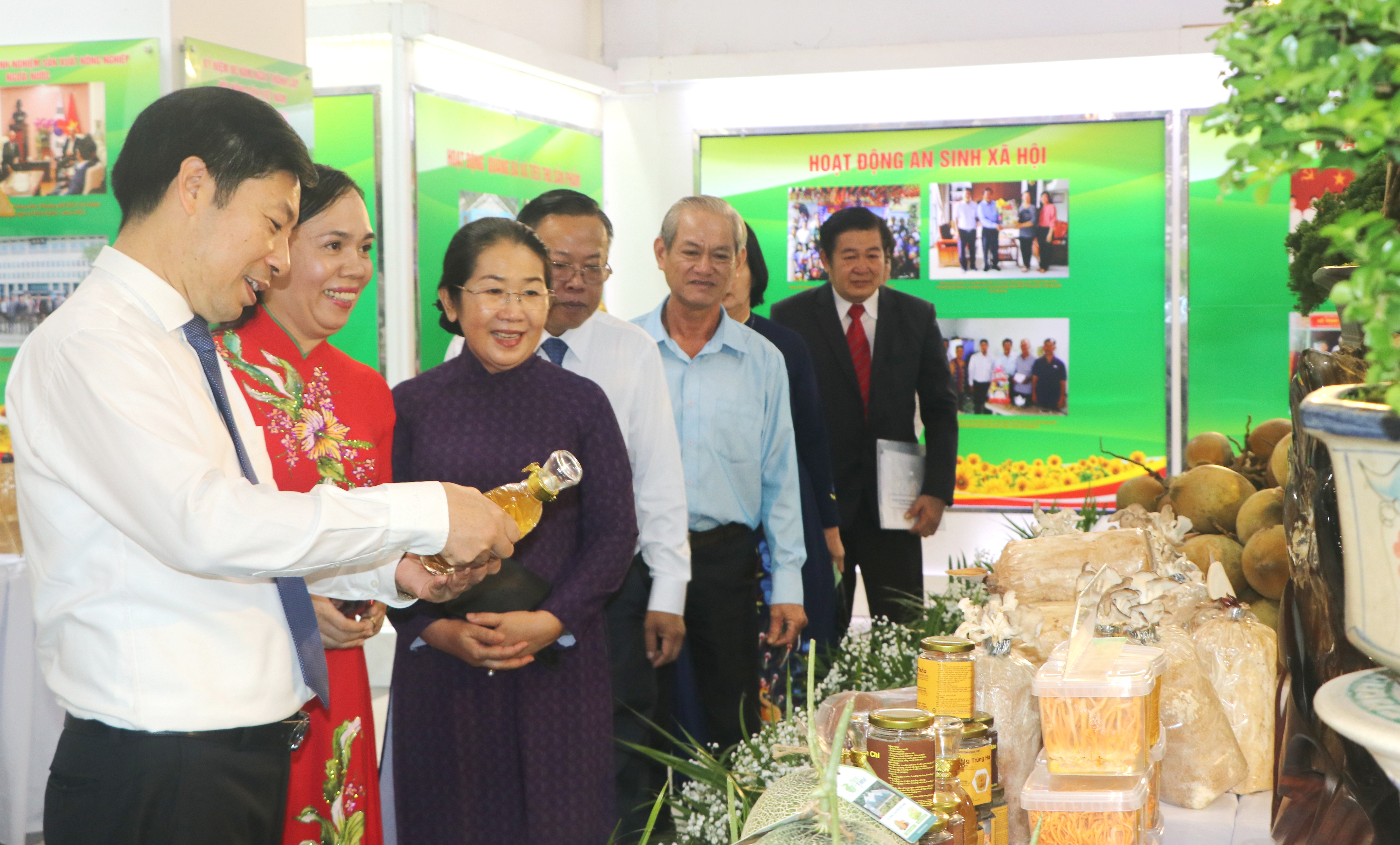 Đại biểu tham quan sản phẩm nông nghiệp tiêu biểu tại triển lãm.