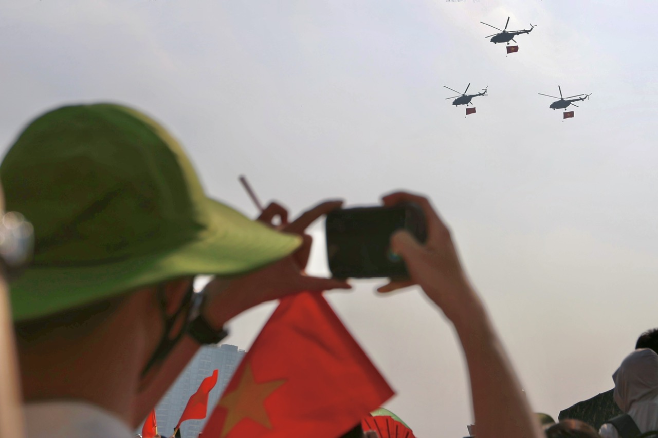 Người dân ghi lại khoảnh khắc trực thăng bay trên bầu trời.