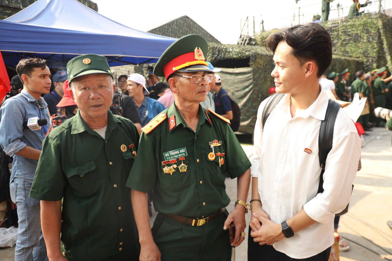 Bạn Cao Trung Nam trò chuyện cùng các bác cựu chiến binh.