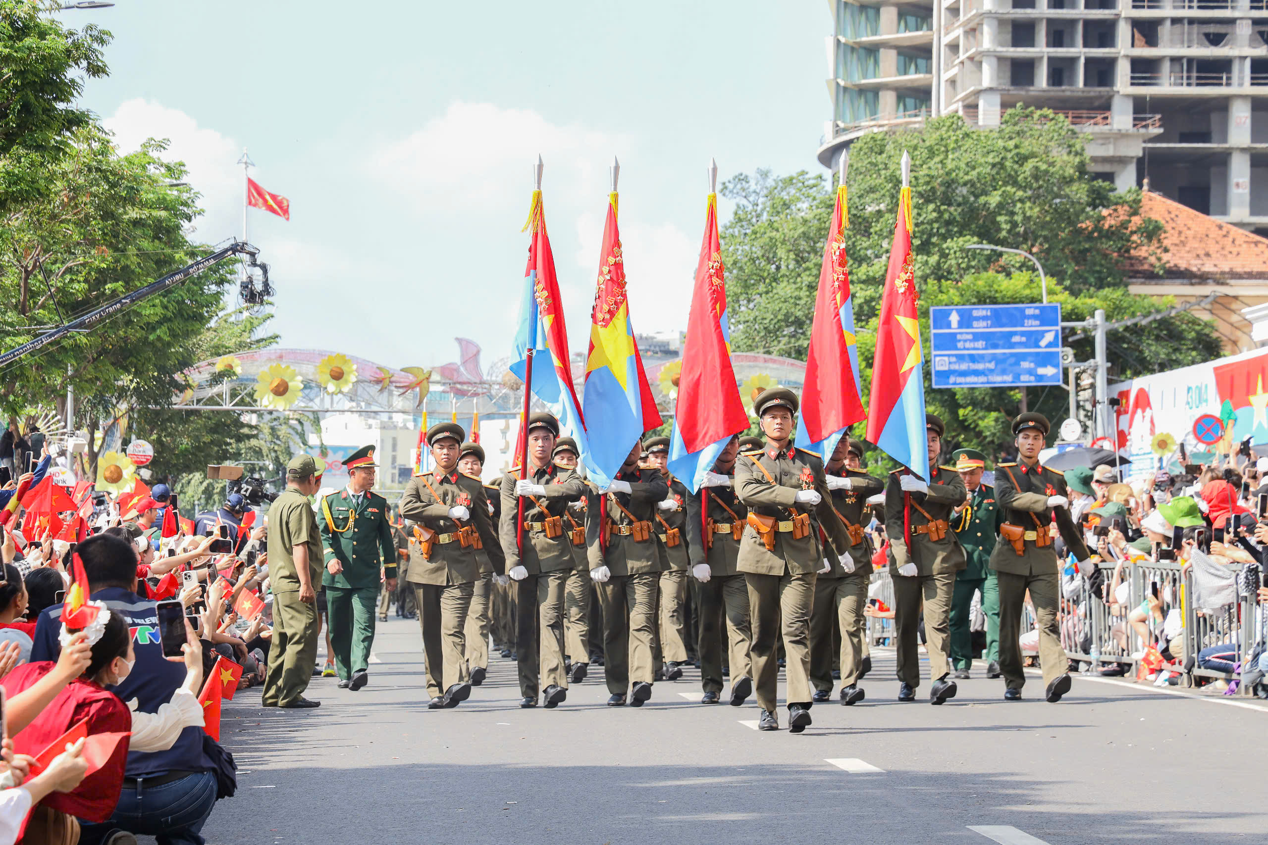 Cảm xúc vỡ òa khi các biên đội trực thăng, tiêm kích chao liệng trên bầu trời, bầu trời của hòa bình. Còn ở dưới mặt đất, tại các trục đường chính là nơi các lực lượng diễu binh, diễu hành được Nhân dân ôm trọn vòng tay. Hàng triệu ánh mắt dõi theo từng đội hình diễu binh chỉnh tề, bước chân đều tắp dưới nắng tháng Tư. Đó là khoảnh khắc thiêng liêng, là hình ảnh hùng tráng của lực lượng vũ trang trong ngày hội thống nhất đất nước.