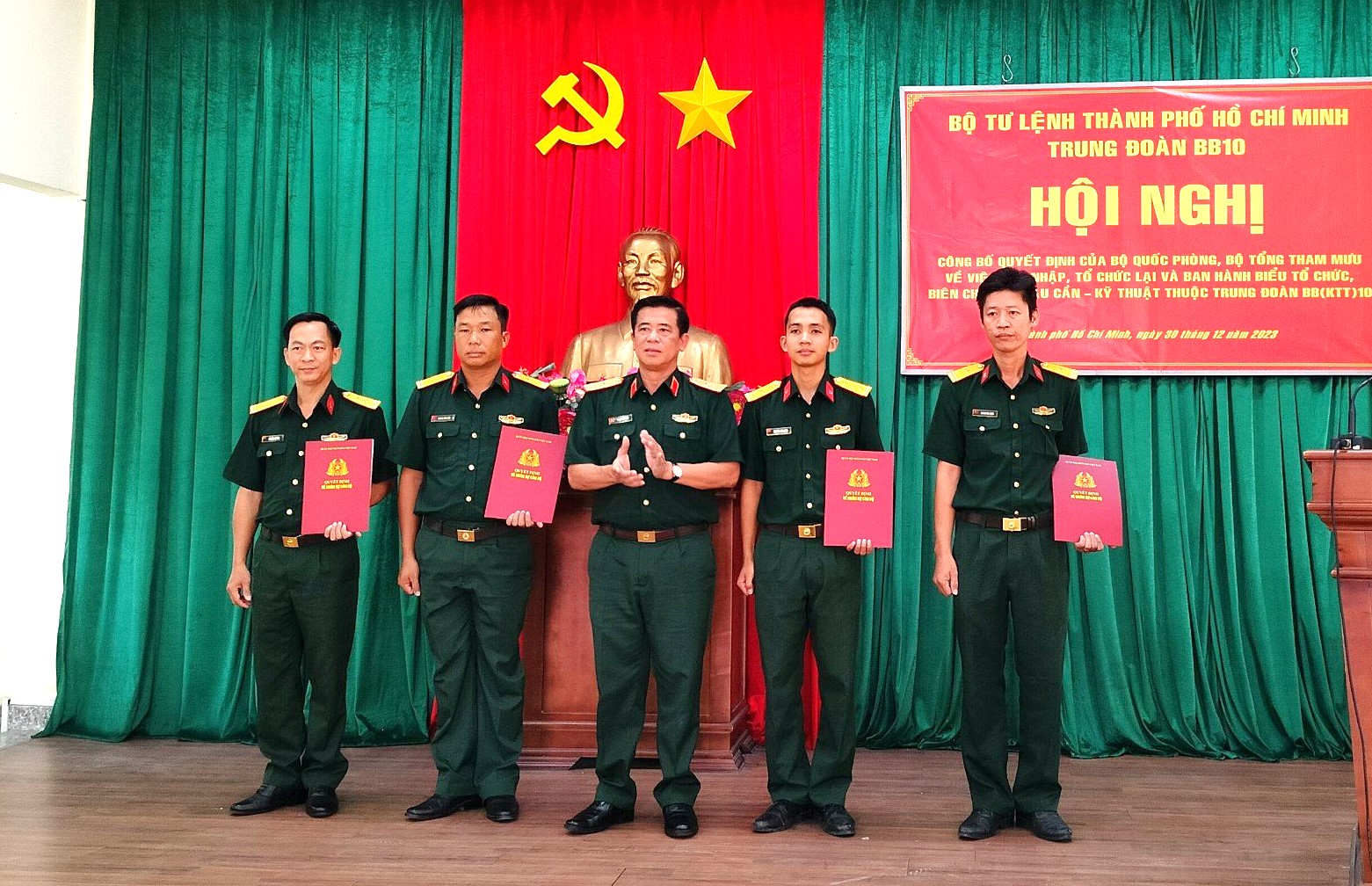 Thực hiện Quyết định của Bộ Quốc phòng, Bộ Tổng Tham mưu; Chỉ thị của Tư lệnh Quân khu 7 về tổ chức sáp nhập Ban Hậu cần - Kỹ thuật cấp Trung đoàn, Đảng ủy, Bộ Tư lệnh Thành phố ban hành kế hoạch triển khai thực hiện quyết định sáp nhập, tổ chức lại Ban Hậu cần, Ban Kỹ thuật thành Ban Hậu cần - Kỹ thuật và công bố quyết định kiện toàn nhân sự Ban Hậu cần - Kỹ thuật Trung đoàn 10.