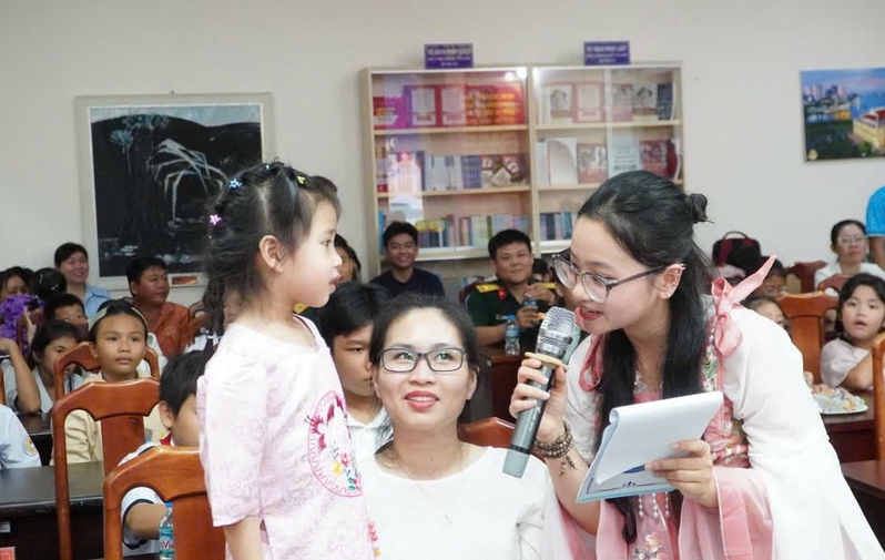 Các em thiếu nhi giao lưu với chị Hằng.