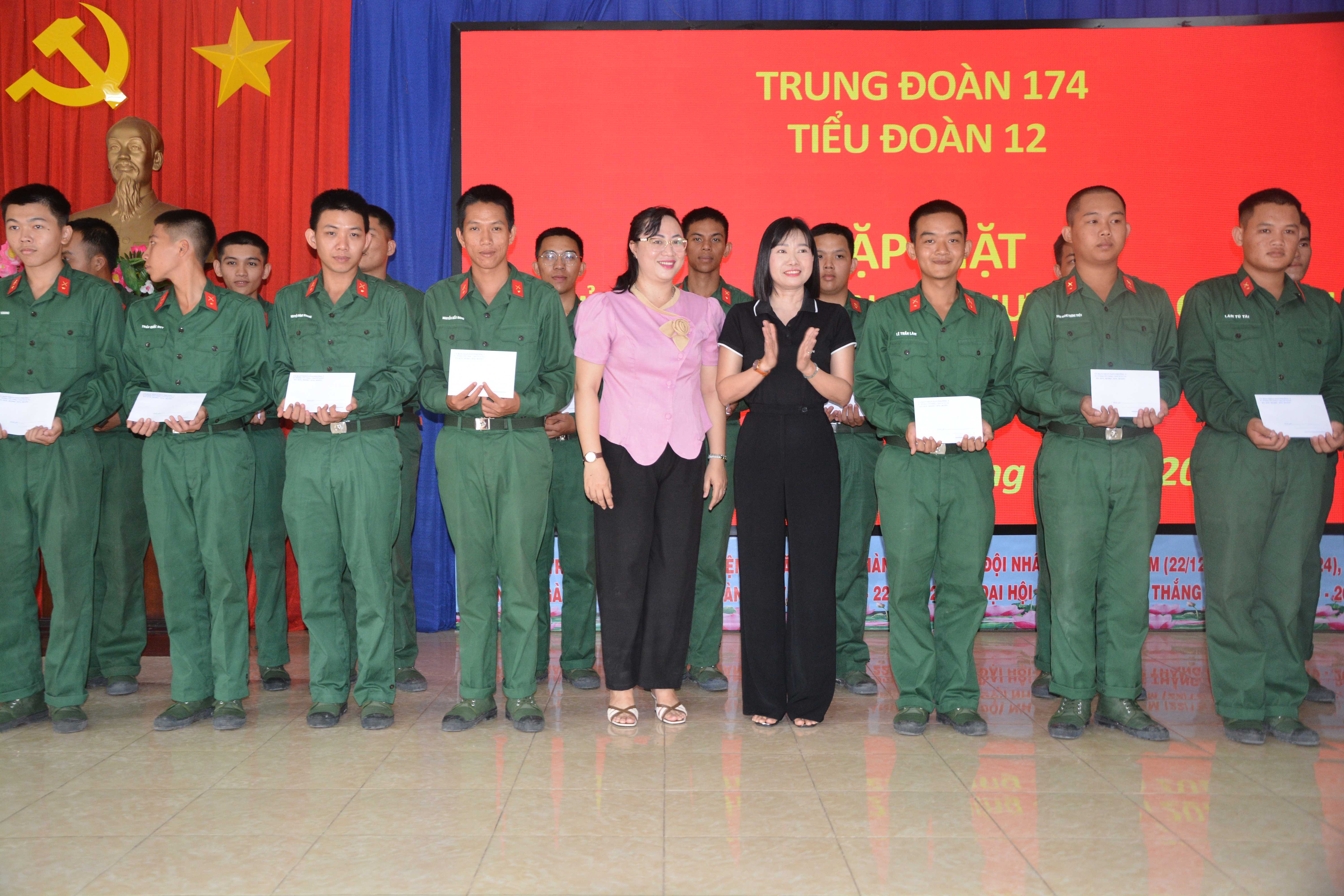 Lãnh đạo địa phương tặng quà cho chiến sĩ mới.
