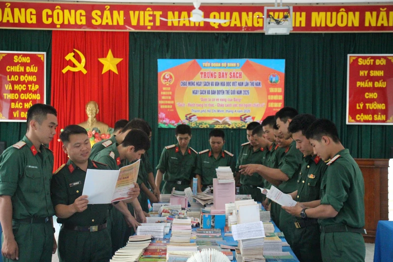 Cán bộ, chiến sĩ Tiểu đoàn 5, Trung đoàn 2, Sư đoàn 9 tham gia các hoạt động hưởng ứng Ngày Sách và Văn hóa đọc Việt Nam lần thứ năm và Ngày Sách và Bản quyền Thế giới 2026.