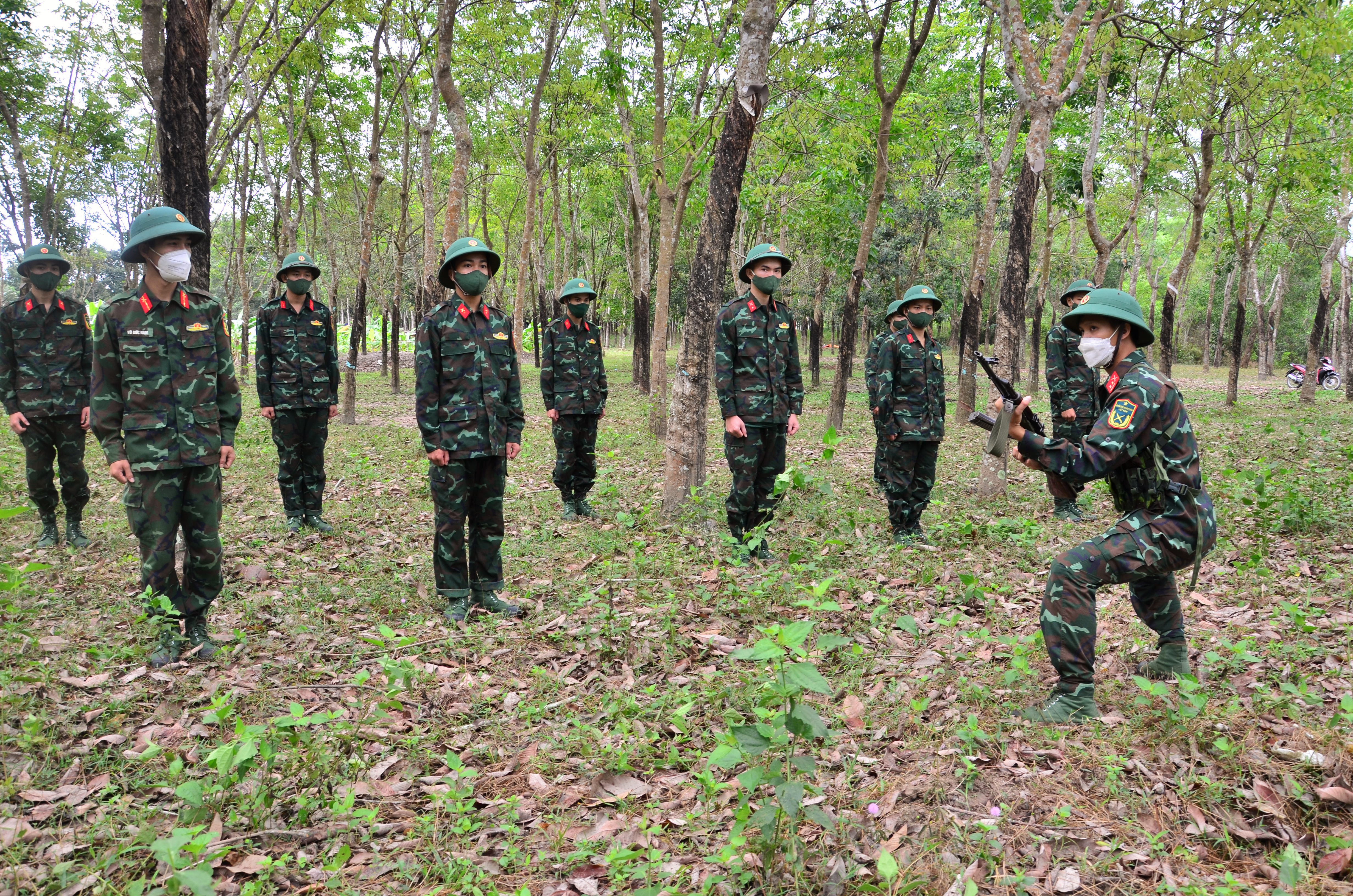 Trung đội trưởng thực hành lên lớp tại buổi kiểm tra.