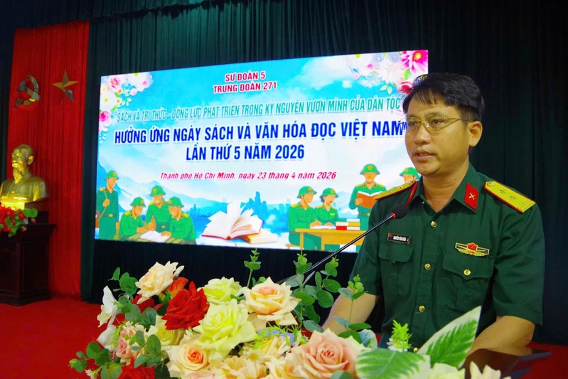 (QK7 Online) - Chiều 23-4, Công ty Tây Nam phối hợp với Trường Quân sự Quân khu 7 tổ chức các hoạt động hưởng ứng Ngày sách và Văn hóa đọc Việt Nam lần thứ 5 năm 2026 với chủ đề “Sách - Tri thức - Khát vọng phát triển đất nước”.
