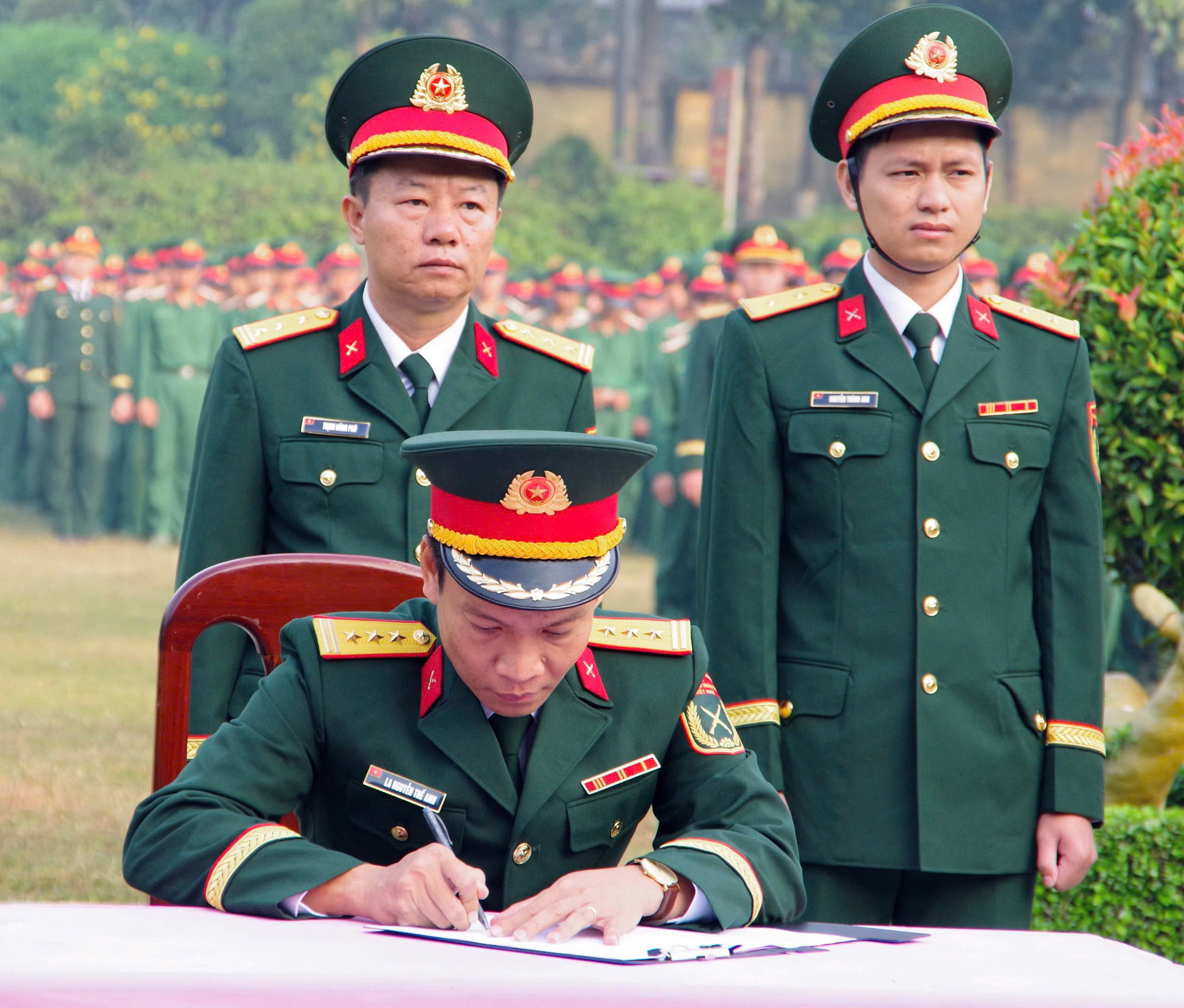 Đại diện các đơn vị trong trung đoàn ký kết thi đ​ua