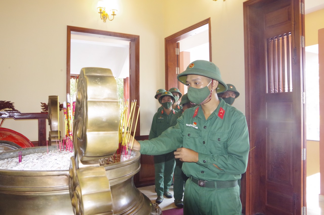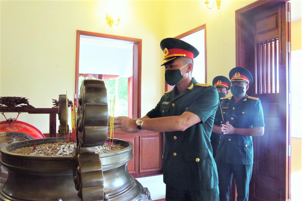 Cán bộ, chiến sĩ Trung đoàn 5 dâng hương Nhà tưởng niệm Chủ tịch Hồ Chí Minh và Bia tưởng niệm các anh hùng, liệt sĩ Sư đoàn 5.