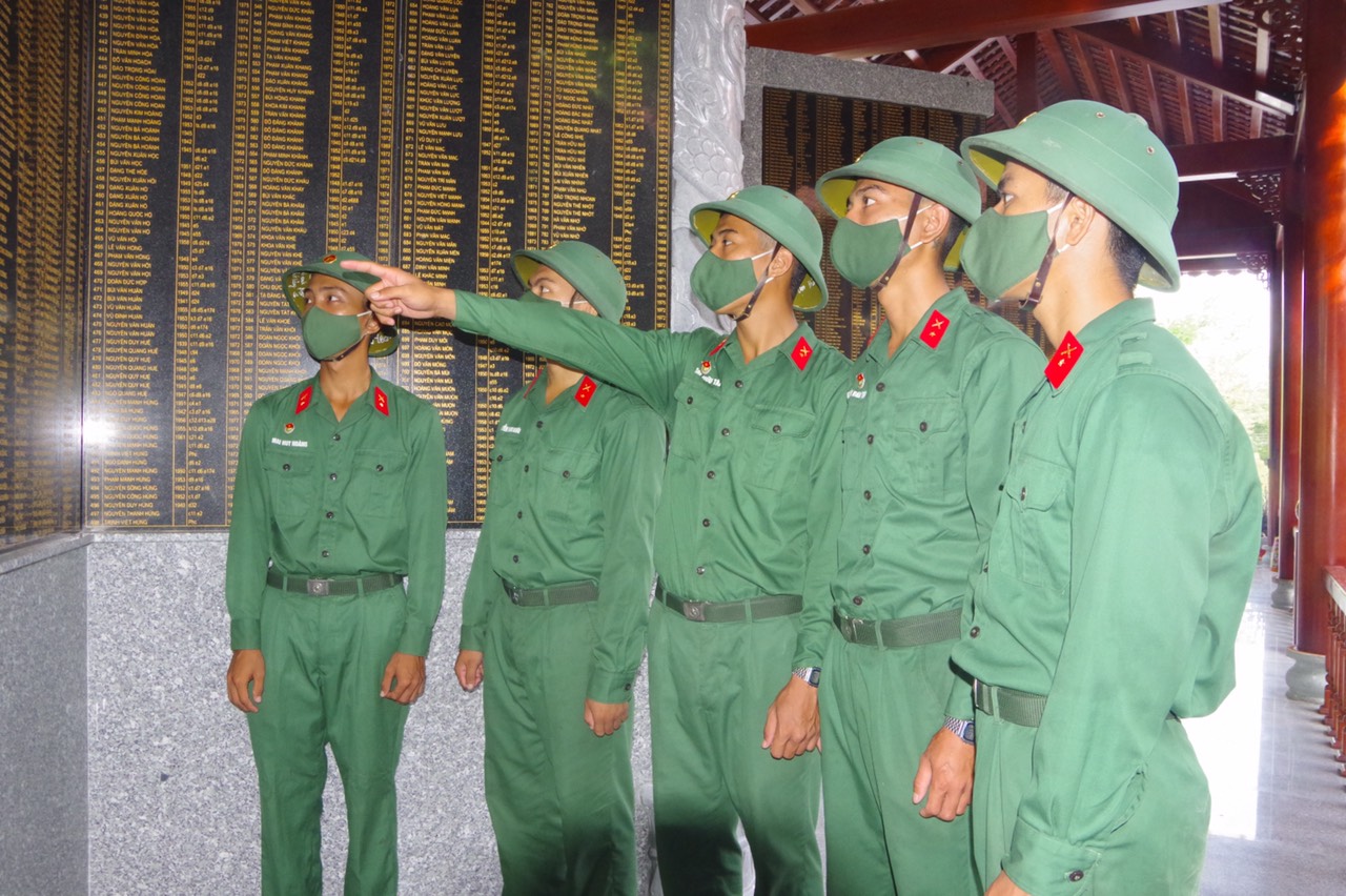 Chiến sĩ tham quan Bia tưởng niệm các anh hùng, liệt sĩ Sư đoàn 5.