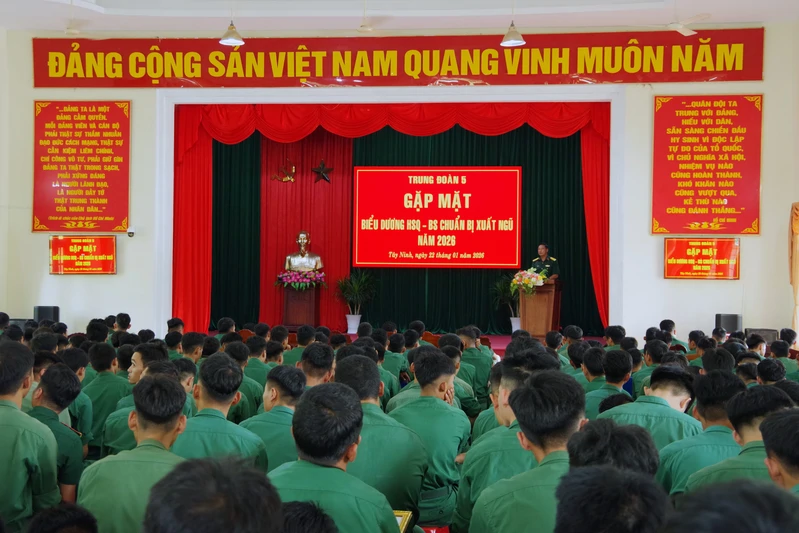 (QK7 Online) - Ngày 22/01, tại tỉnh Tây Ninh, Trung đoàn 5, Sư đoàn 5 tổ chức gặp mặt, giao lưu thế hệ quân nhân hoàn thành nghĩa vụ quân sự năm 2026 với sự tham gia của hơn 700 hạ sĩ quan, chiến sĩ Trung đoàn.