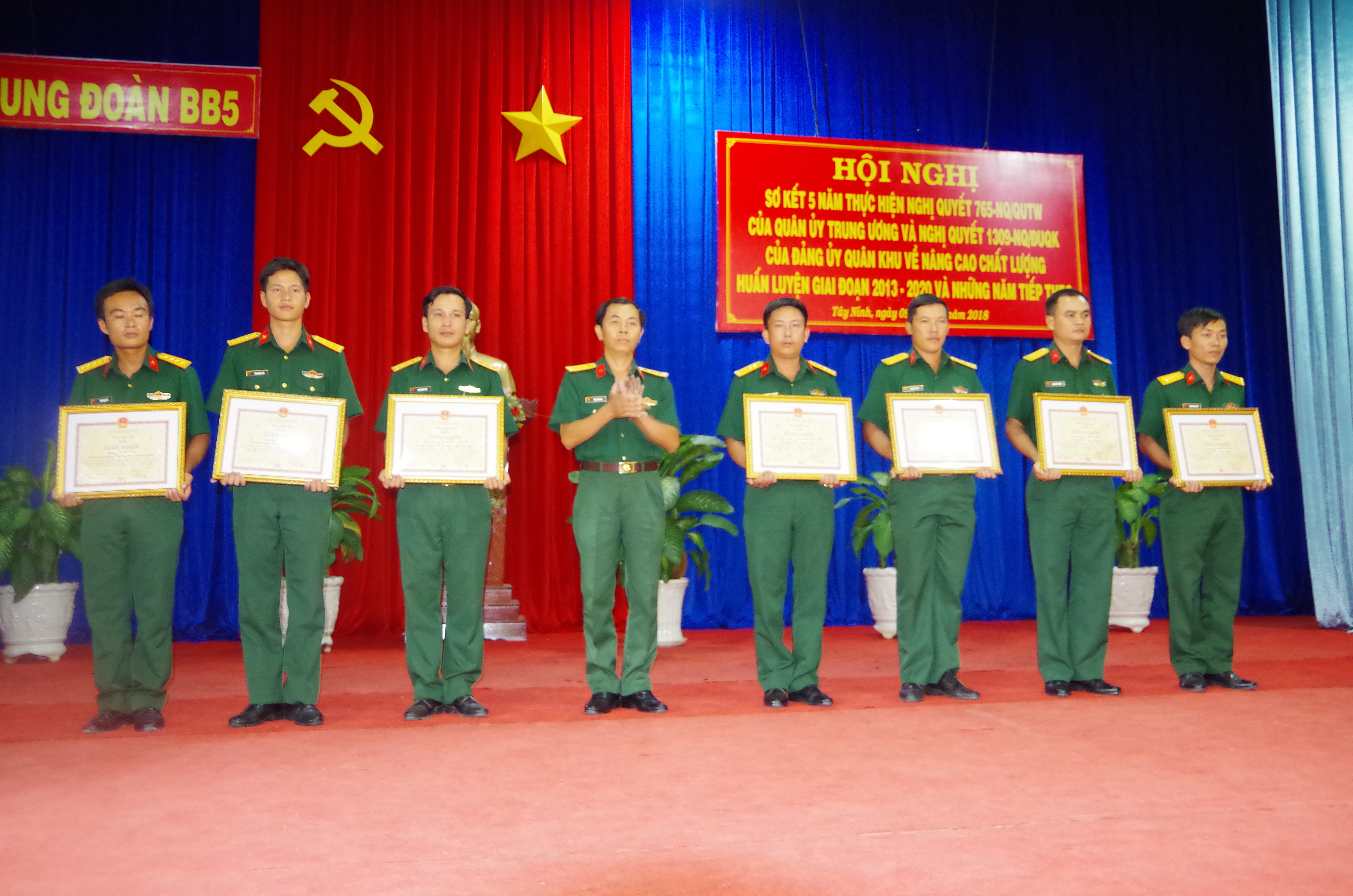 Tại hội nghị, Trung đoàn đã khen thưởng 5 tập thể và 7 cá nhân đã hoàn thành xuất sắc nhiệm vụ trong 5 năm (2013-2018).