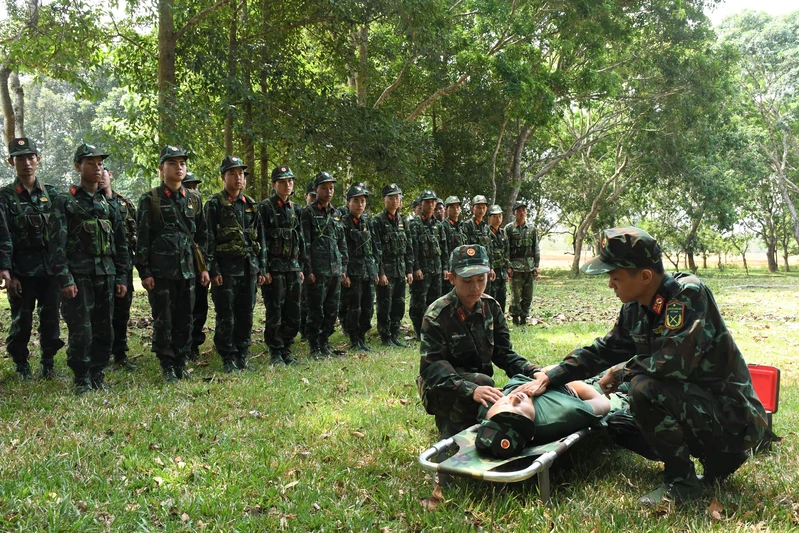 Ngoài ra, lực lượng quân y đơn vị thường xuyên bám sát bộ đội trang bị kiến thức về kỹ năng sơ cứu say nắng, say nóng cho cán bộ, chiến sĩ, sẵn sàng xử lý mọi tình huống trên thao trường.