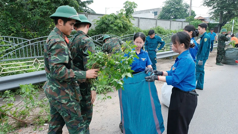 Chiến sĩ Trung đoàn Gia Định và tình nguyện viên ra quân dọn dẹp đường phố, khu vực.