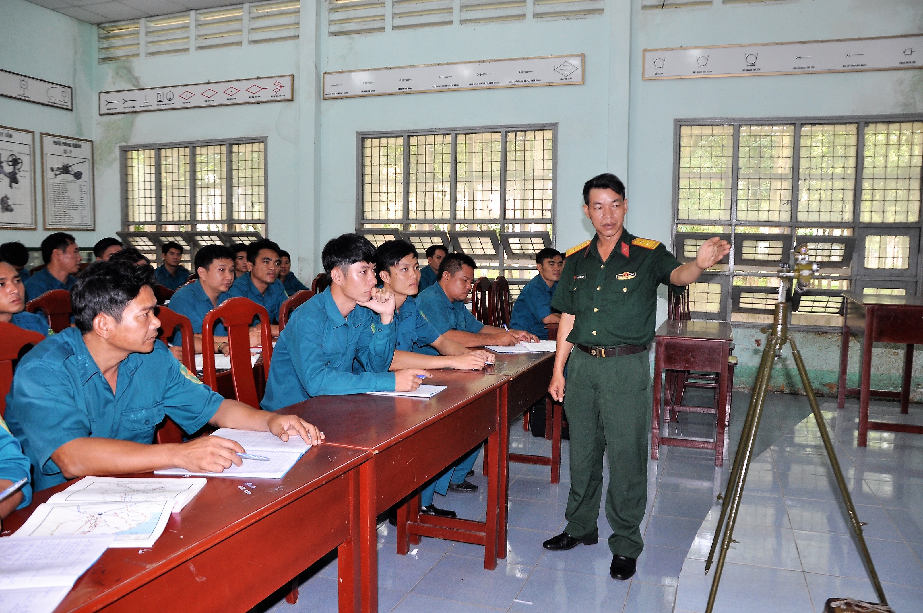 Trung tá Ngô Xuân Tuấn trong giờ lên lớp.