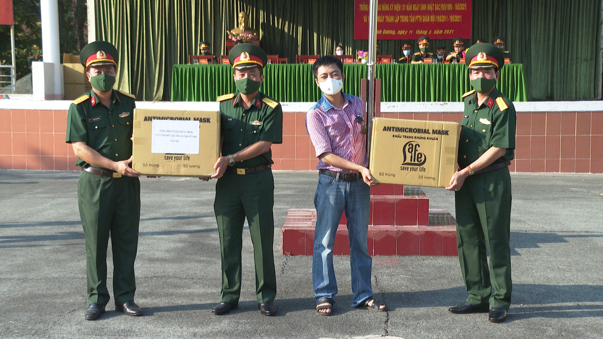 Dịp này, Trung tâm Phát thanh - Truyền hình Quân đội phối hợp với Công ty Trách nhiệm hữu hạn một thành viên Cuộc sống an toàn Việt Nam trao 5.000 khẩu trang y tế tặng Trường Quân sự Quân đoàn 4, góp phần hỗ trợ nhà trường trong công tác phòng chống dịch COVID-19.