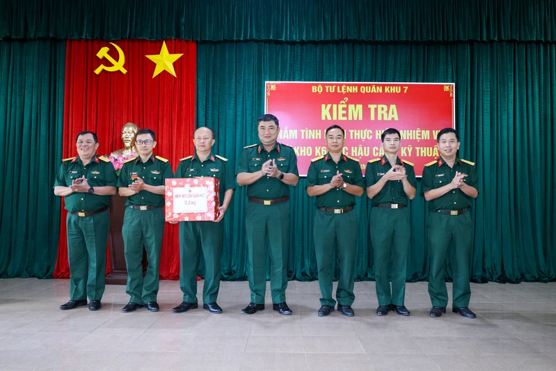 (QK7 Online) - Ngày 17/3, đoàn công tác Bộ Tư lệnh Quân khu 7 do Trung tướng Lê Xuân Thế, Ủy viên Ban Chấp hành Trung ương Đảng, Tư lệnh Quân khu đã kiểm tra, nắm tình hình thực hiện nhiệm vụ tại Kho K6, Cục Hậu cần - Kỹ thuật (Cục HC-KT) Quân khu. Tham gia đoàn có Đại tá Nguyễn Thanh Tâm, Chủ nhiệm HC-KT Quân khu cùng thủ trưởng các cơ quan chức năng thuộc Quân khu.