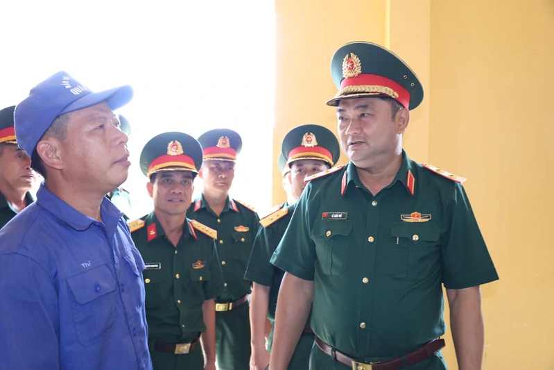 Trung tướng Lê Xuân Thế, Ủy viên Ban Chấp hành Trung ương Đảng, Tư lệnh Quân khu trò chuyện, động viên đồng chí thủ kho.