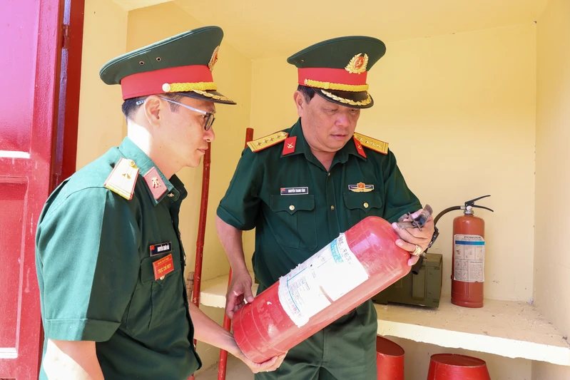 Đại tá Nguyễn Thanh Tâm, Chủ nhiệm HC-KT Quân khu kiểm tra thiết bị phòng cháy, chữa cháy tại các nhà kho.