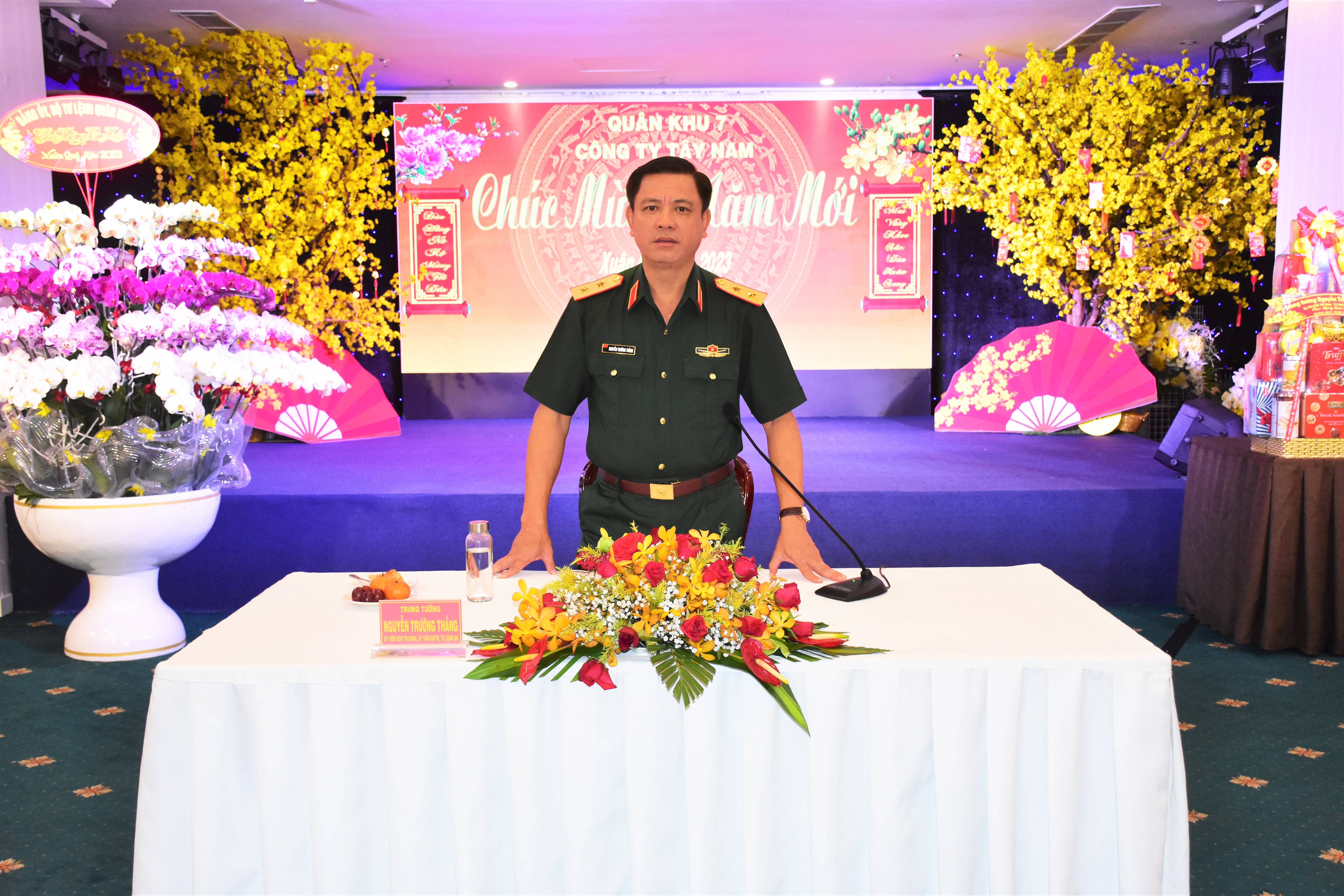 Nhân dịp chuẩn bị bước sang năm mới, Trung tướng Nguyễn Trường Thắng gửi đến quý lãnh đạo, cán bộ, công nhân viên chức, người lao động Tập đoàn Thành Thành Công; Tập đoàn City Group; Tập đoàn Cityland cùng gia đình mạnh khỏe, an khang, thịnh vượng, hoàn thành thắng lợi mọi nhiệm vụ năm 2023. Mong muốn các tập đoàn, doanh nghiệp luôn đồng hành, ủng hộ Quân khu thực hiện hiệu quả các hoạt động an sinh xã hội và nhiệm vụ quân sự, quốc phòng.