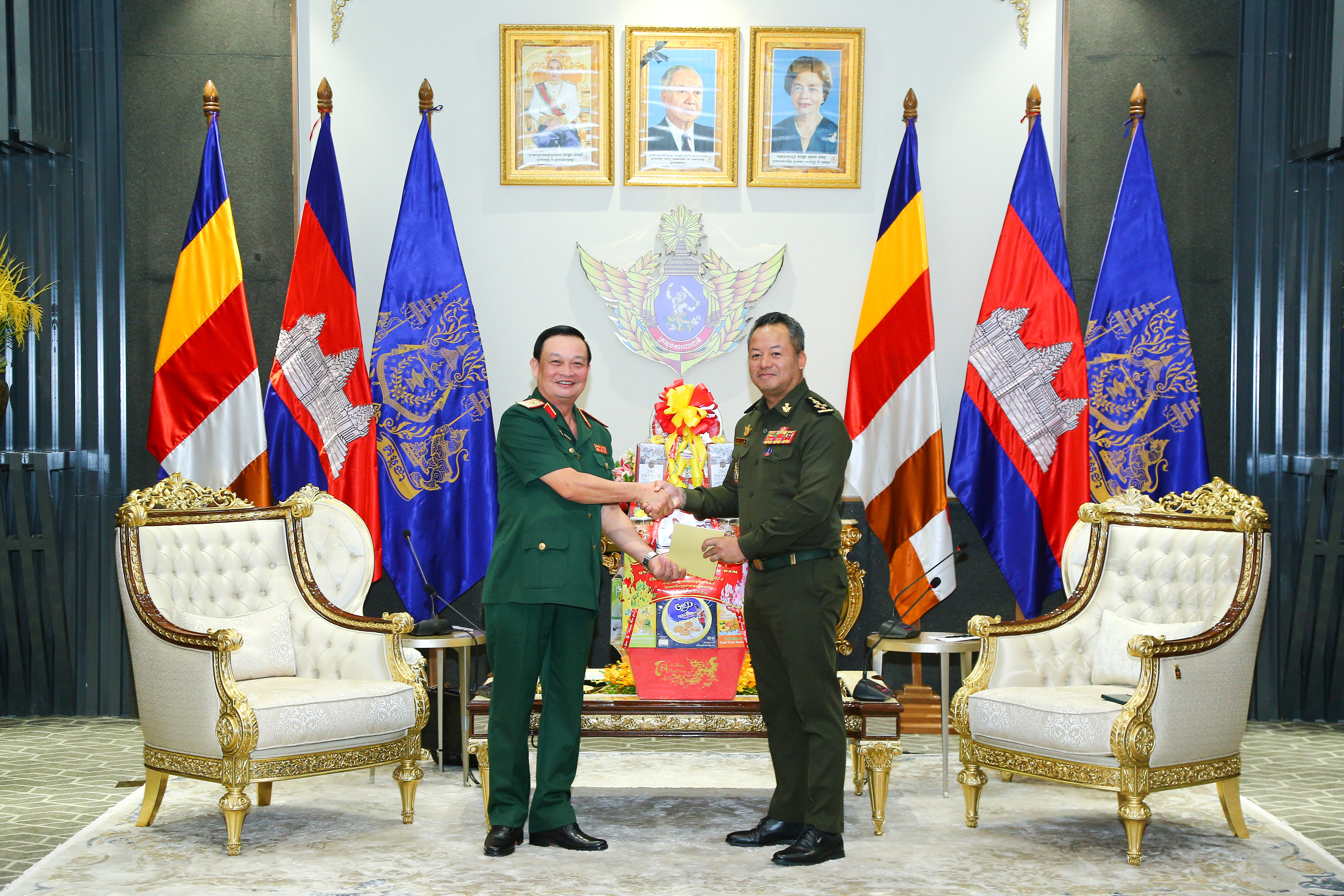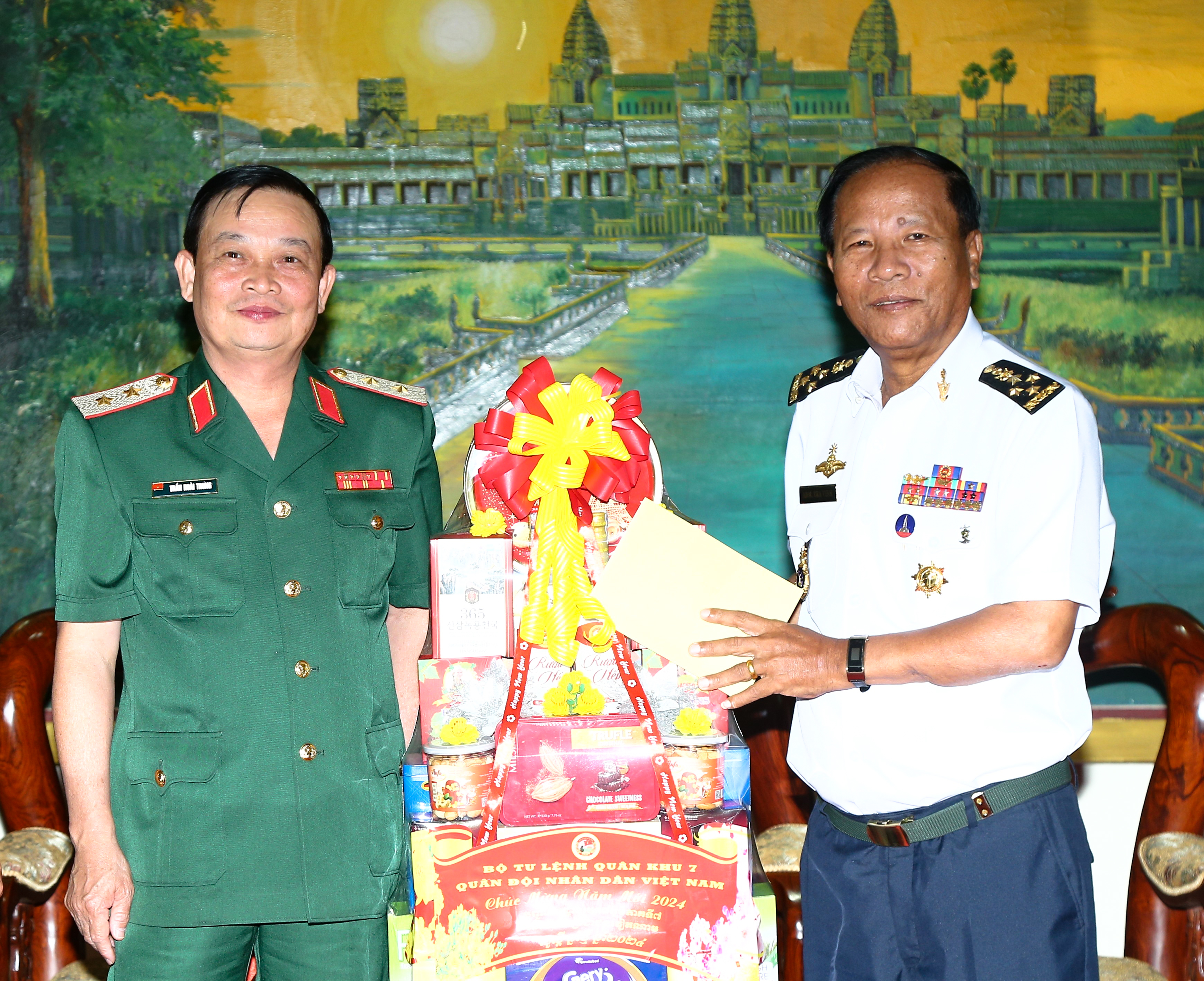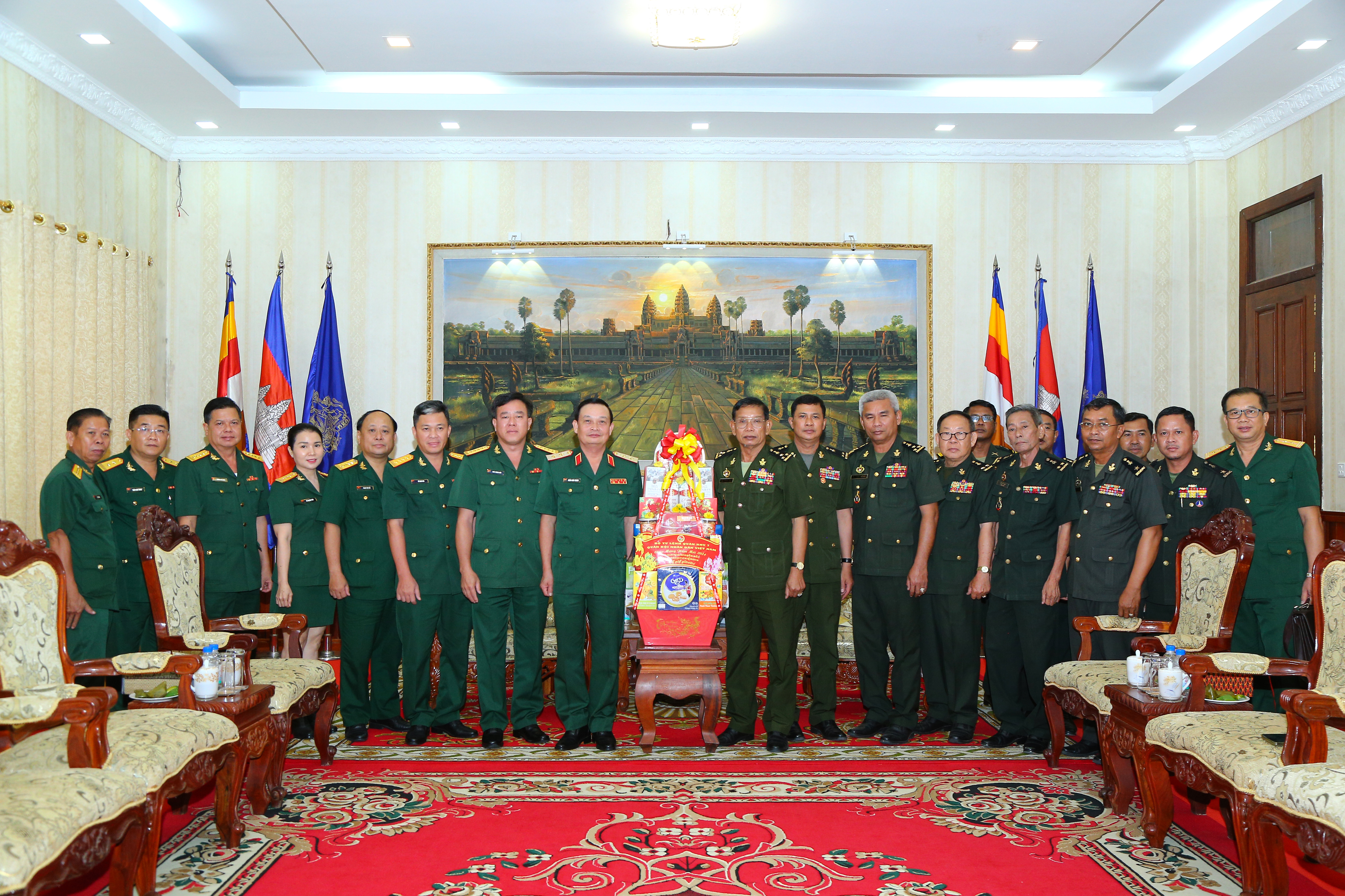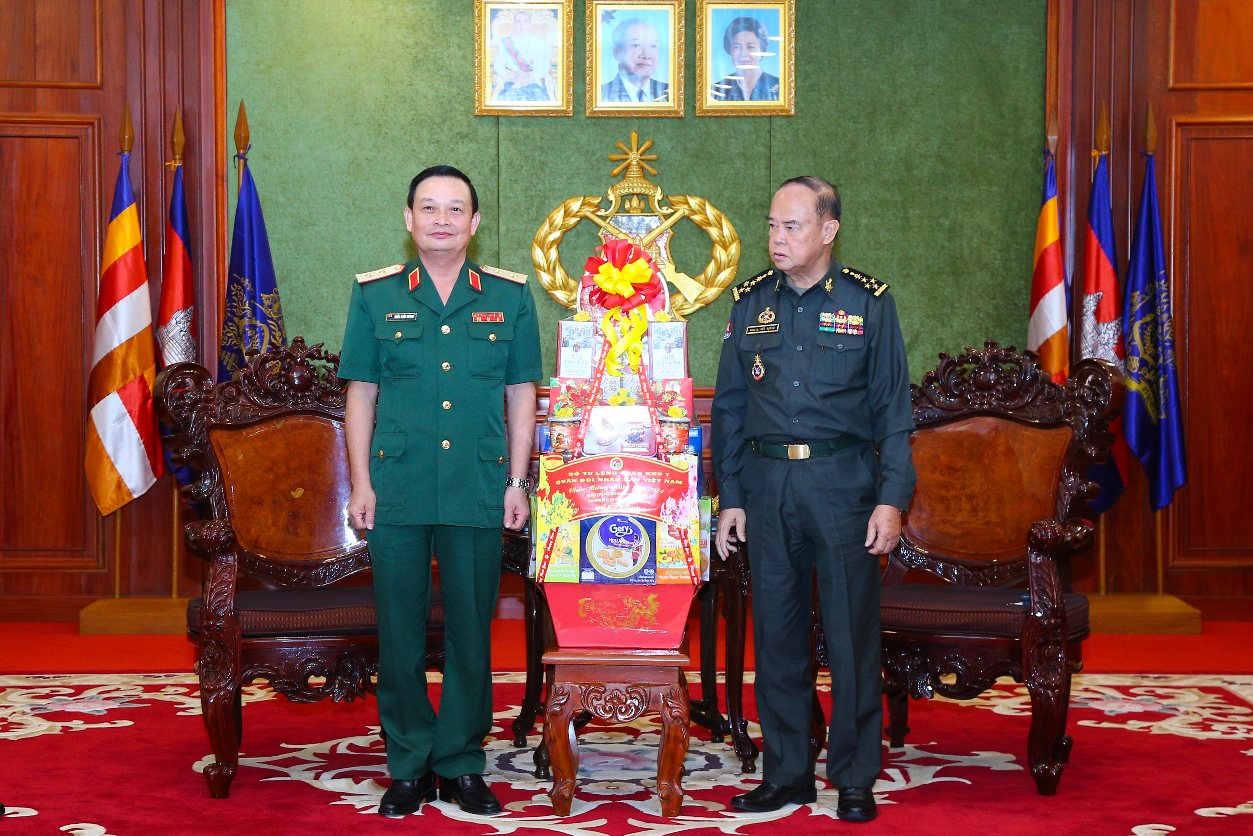 Trung tướng Trần Hoài Trung và đoàn cán bộ Quân khu 7 chúc Tết Chol Chnam Thmay Bộ Tư lệnh Lục quân, Quân đội Hoàng gia Campuchia.