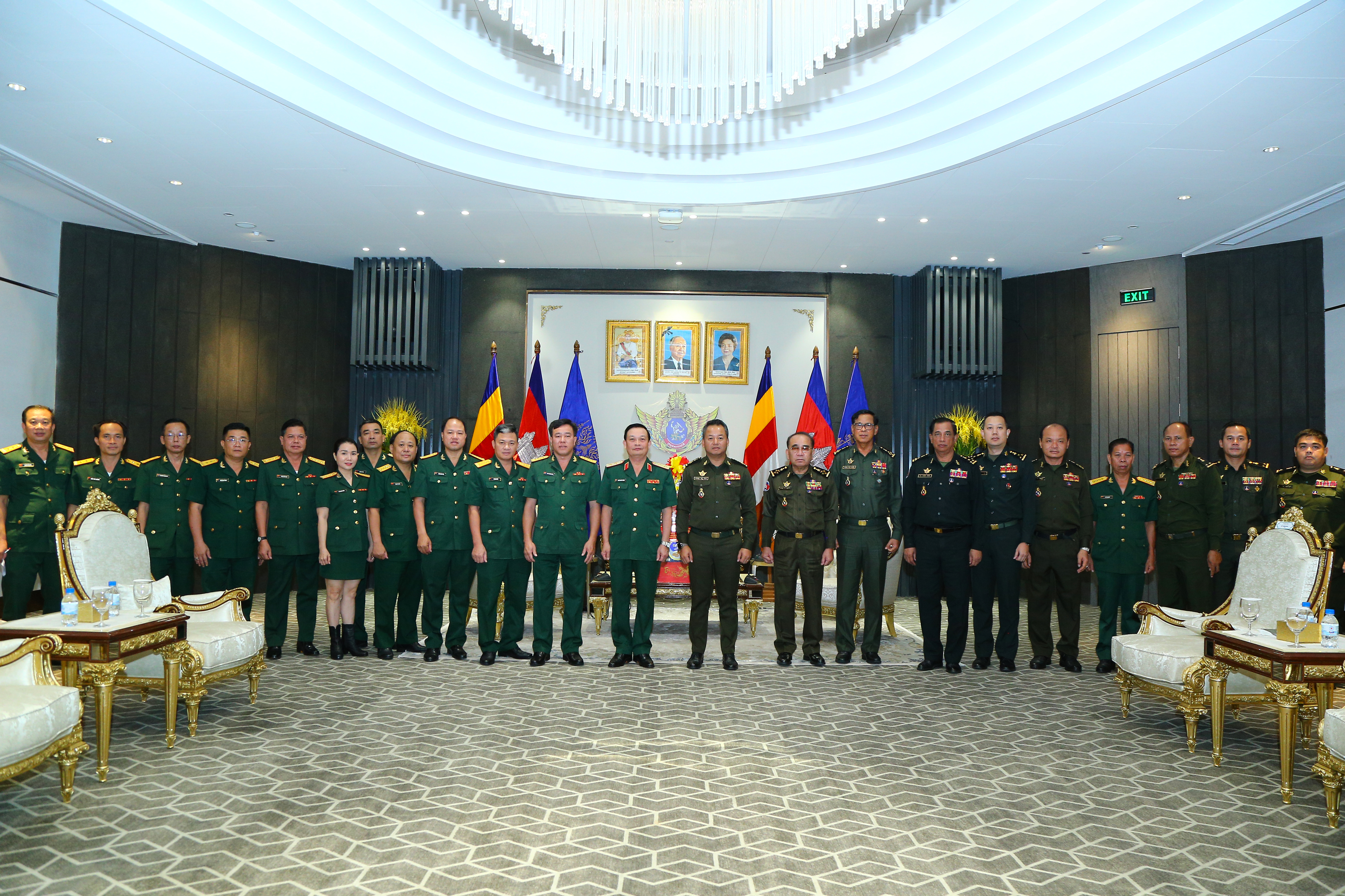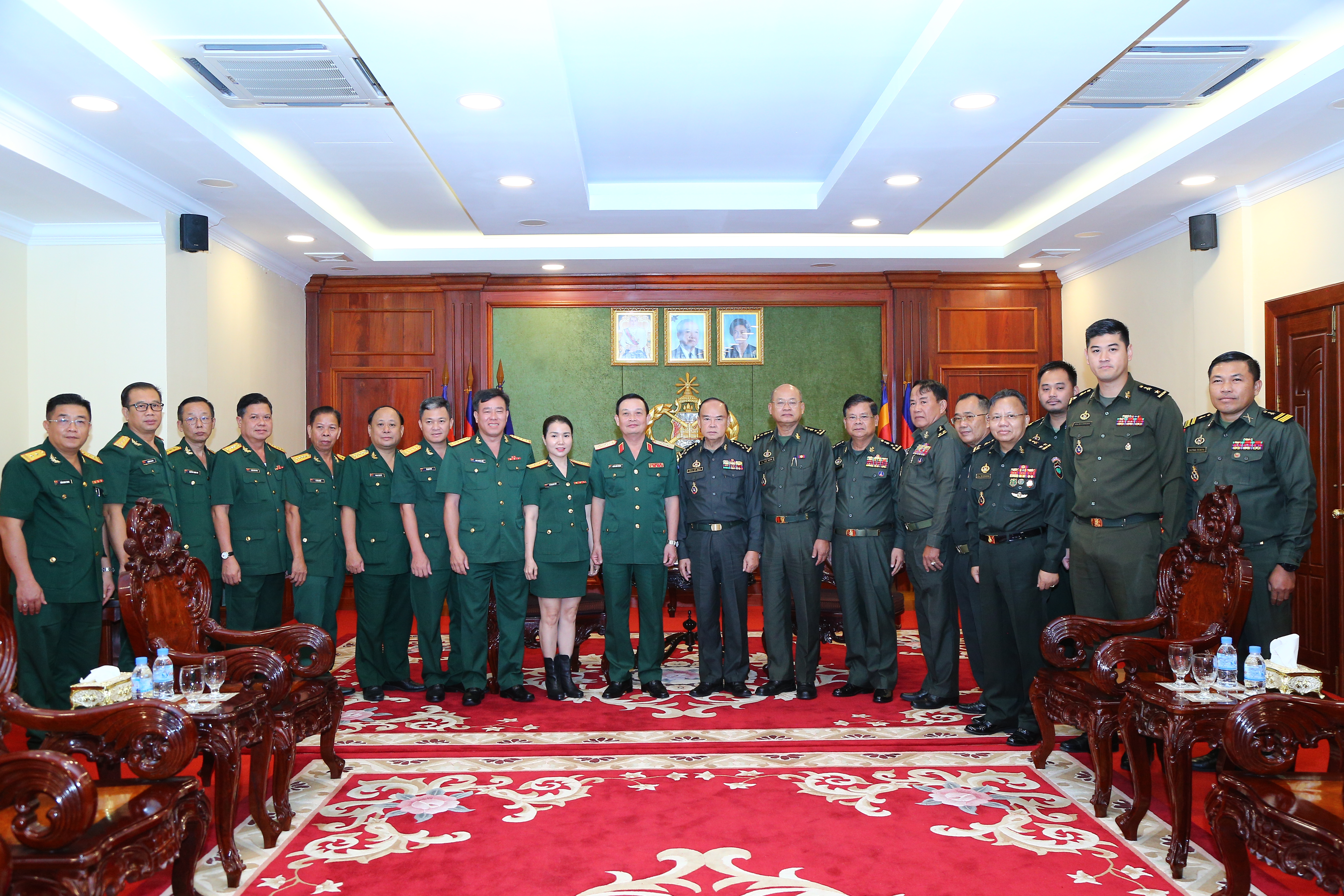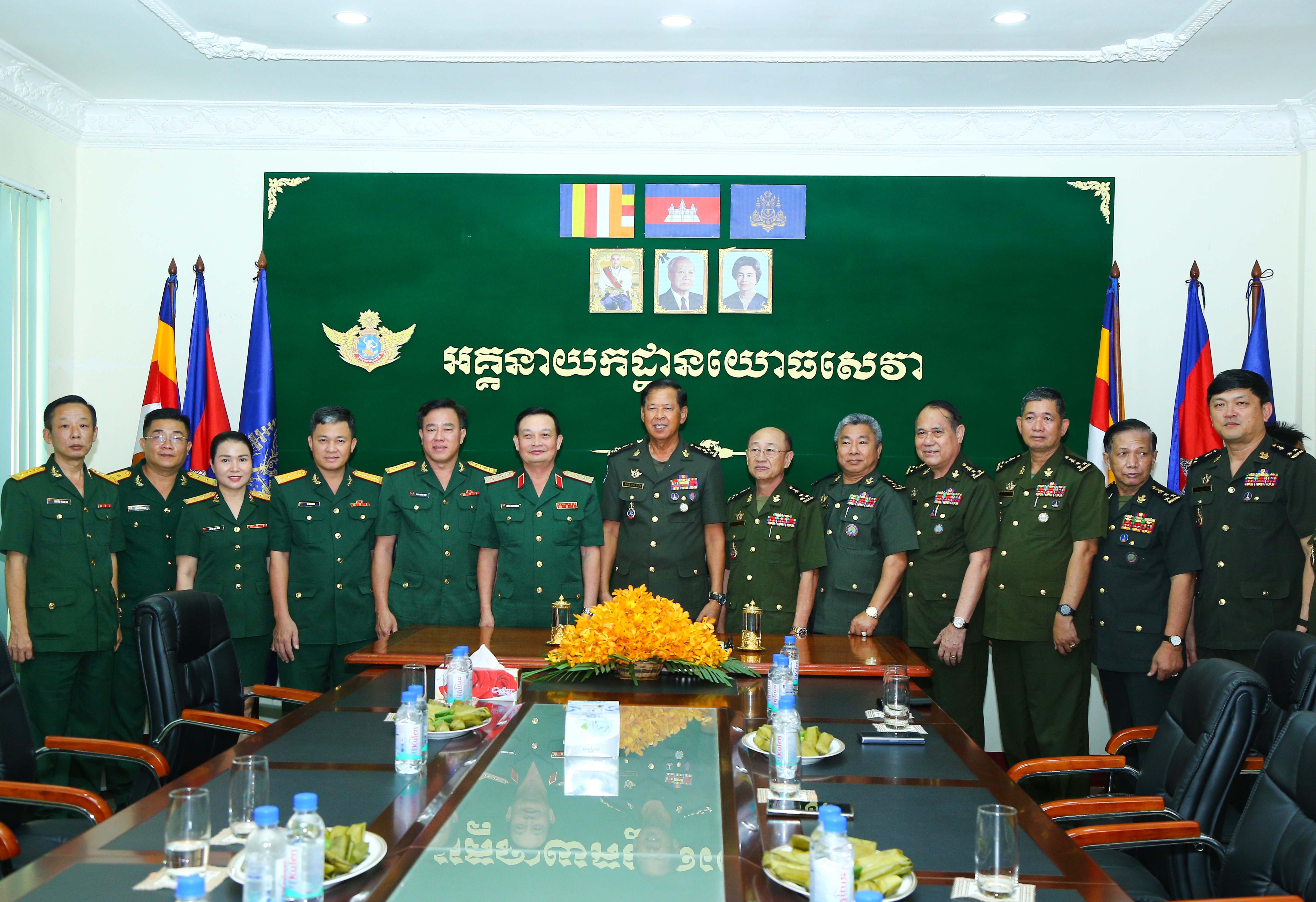 Đoàn công tác Quân khu 7 chụp hình lưu niệm với các tướng lĩnh cao cấp Quân đội Hoàng gia Campuchia.