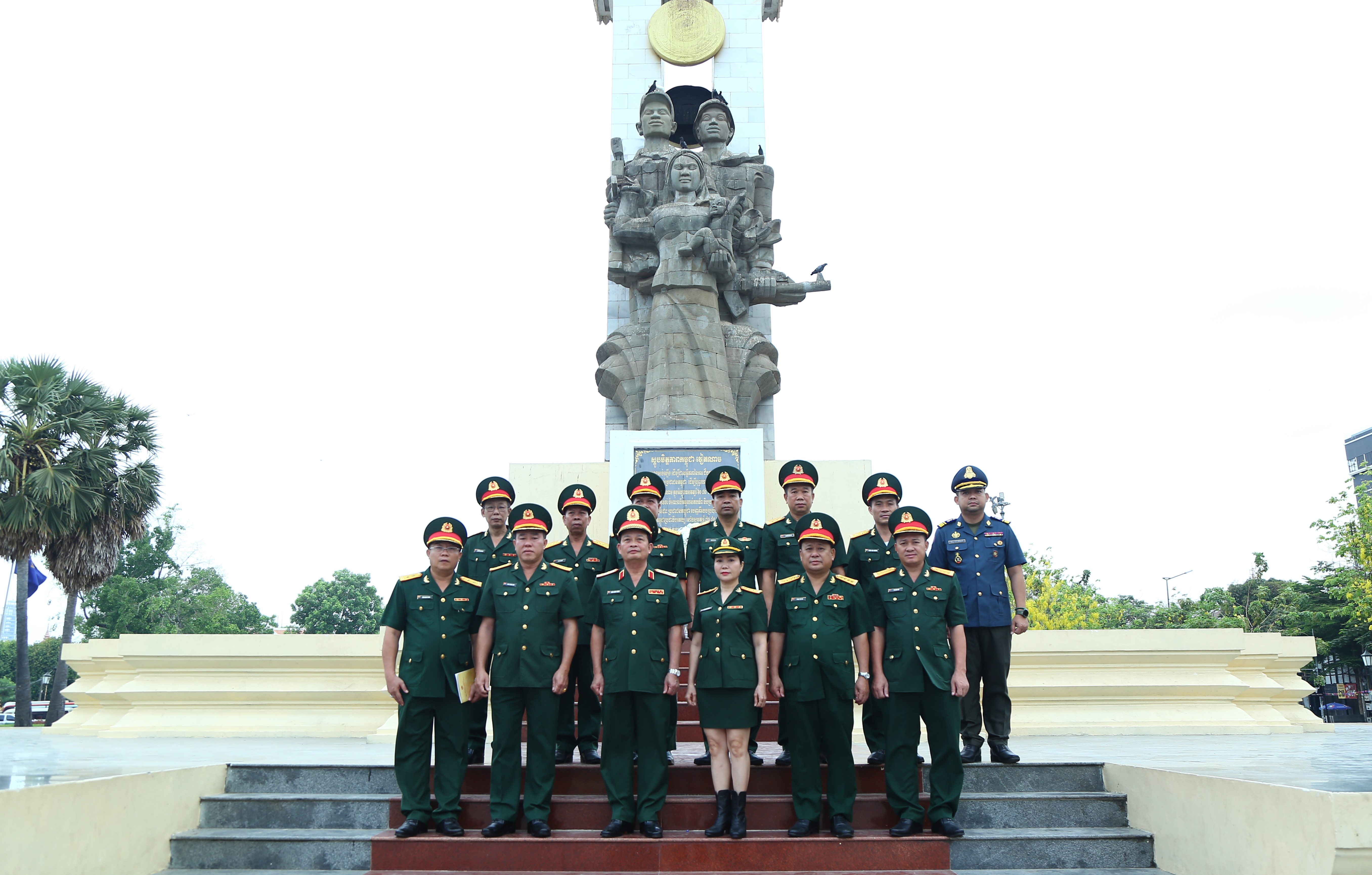 Tại Tượng đài Hữu nghị Việt Nam - Campuchia ở Thủ đô Phnôm Pênh, đoàn cán bộ Quân khu 7 đến viếng và dâng hương tưởng nhớ các liệt sĩ quân tình nguyện và gia Việt Nam hy sinh tại Campuchia.