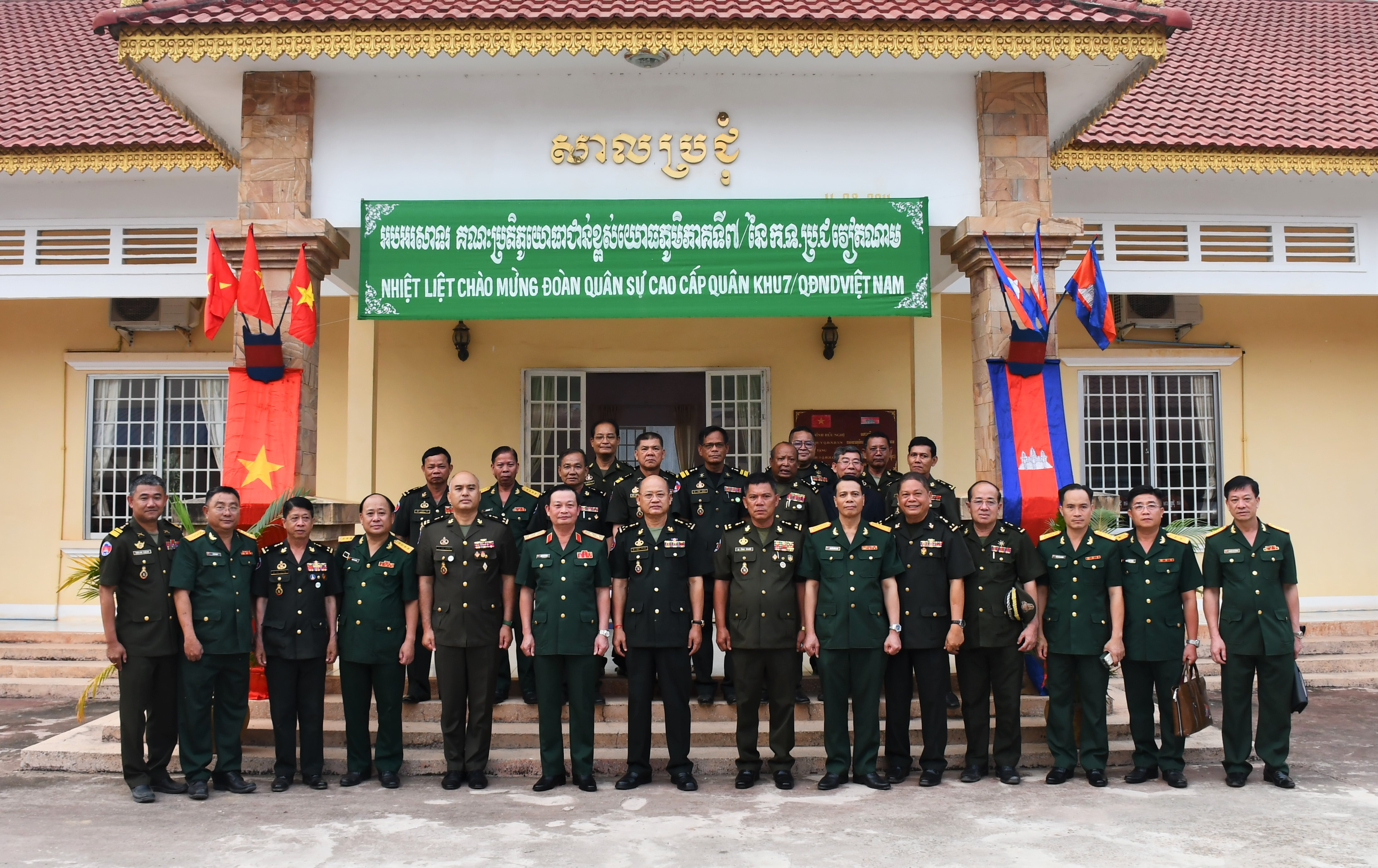 Bộ Tư lệnh Quân khu 7 Quân đội nhân dân Việt Nam và  Bộ Tư lệnh Quân khu 1 Quân đội Hoàng gia Campuchia chụp hình lưu niệm.