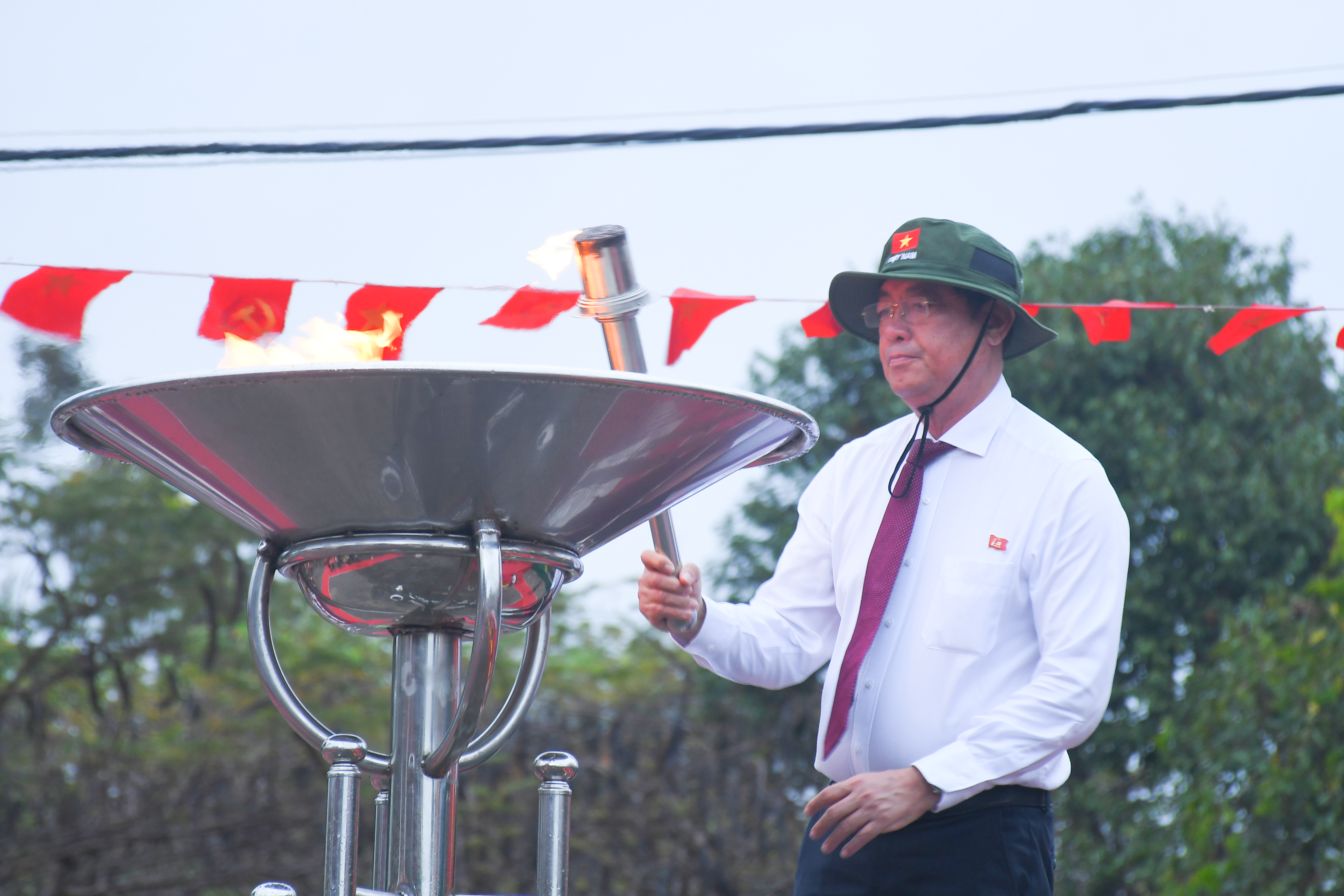 Đồng chí Trần Đình Khoa, Bí thư Thành ủy Vũng Tàu thắp ngọn đuốc truyền thống tại lễ giao nhận quân.