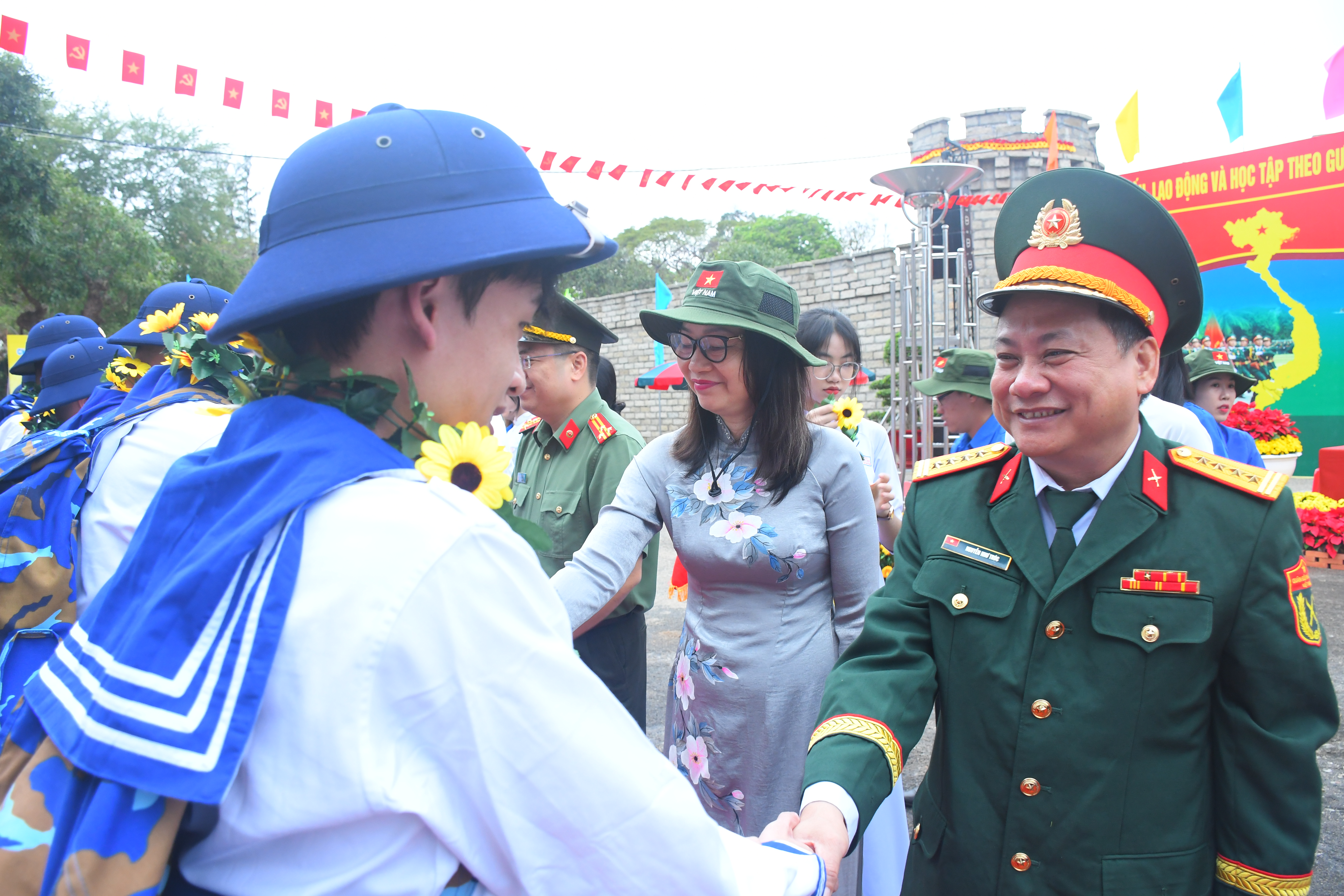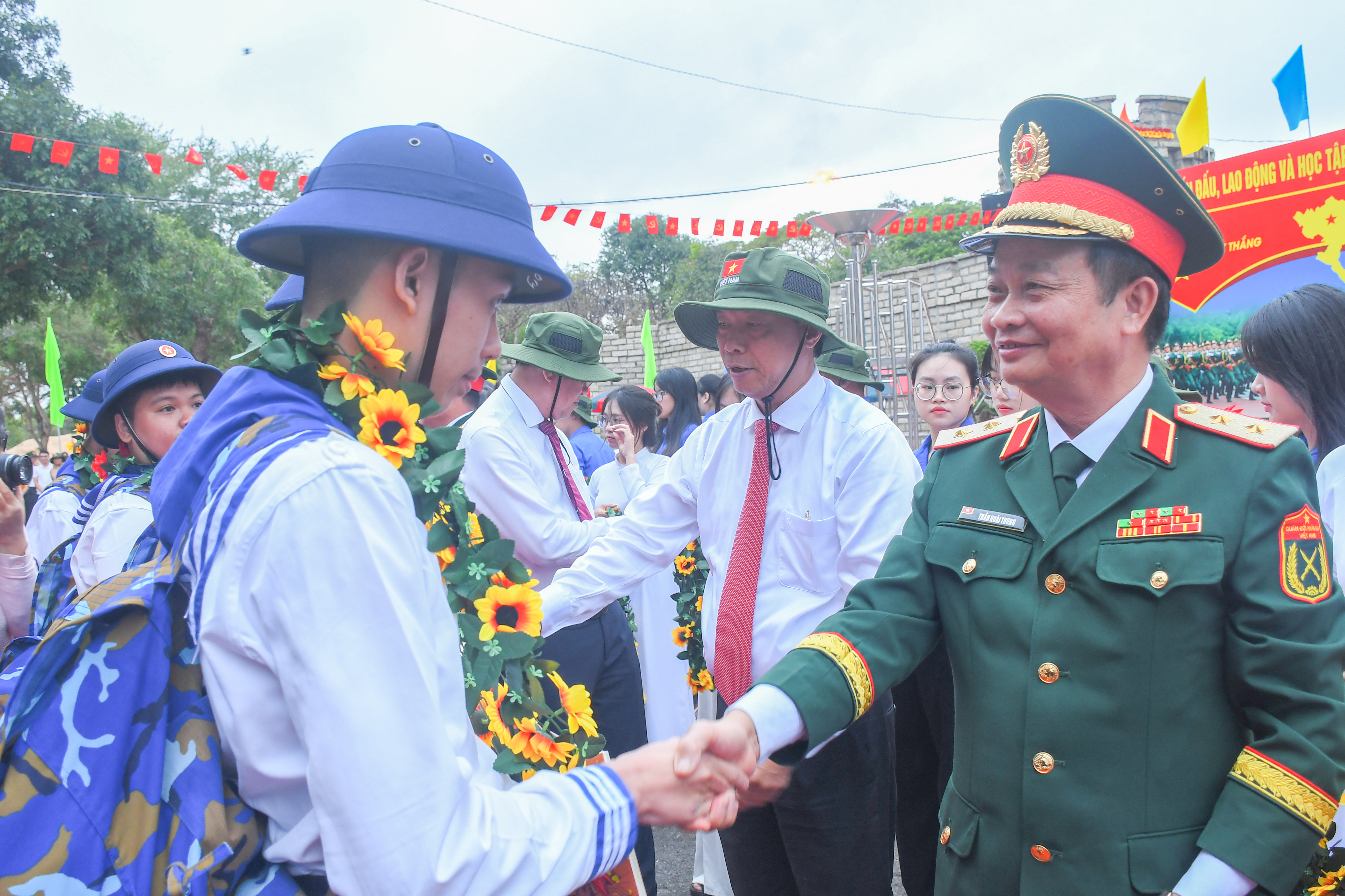 Trung tướng Trần Hoài Trung, Bí thư Đảng ủy, Chính ủy Quân khu 7 tặng hoa thanh niên lên đường nhập ngũ.