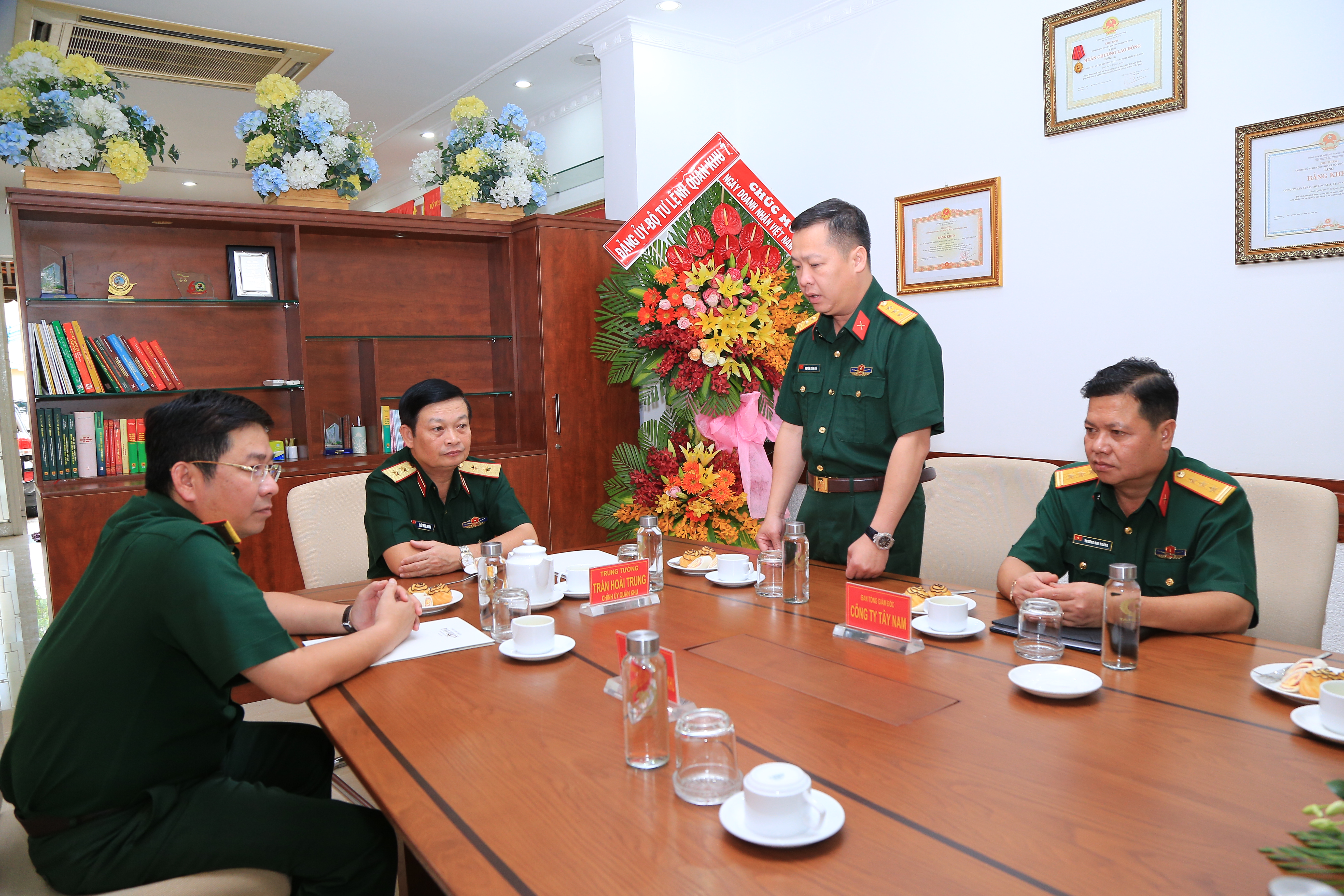 Trung tướng Trần Hoài Trung, Bí thư Đảng ủy, Chính ủy Quân khu tặng hoa chúc mừng Công ty Tây Nam.