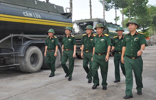 Trung tướng Trần Hoài Trung (thứ 2 từ bên trái) kiểm tra doanh trại Kho VK102