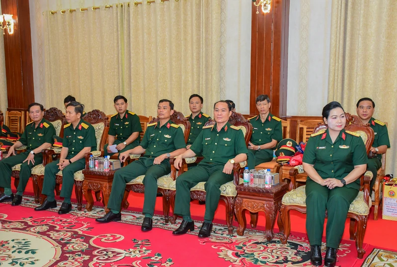 Thiếu tướng Trần Ngọc Minh, Phó Tư lệnh Quân khu và thủ trưởng các cơ quan Quân khu tham gia đoàn chúc Tết các đơn vị Quân đội Hoàng gia Campuchia.