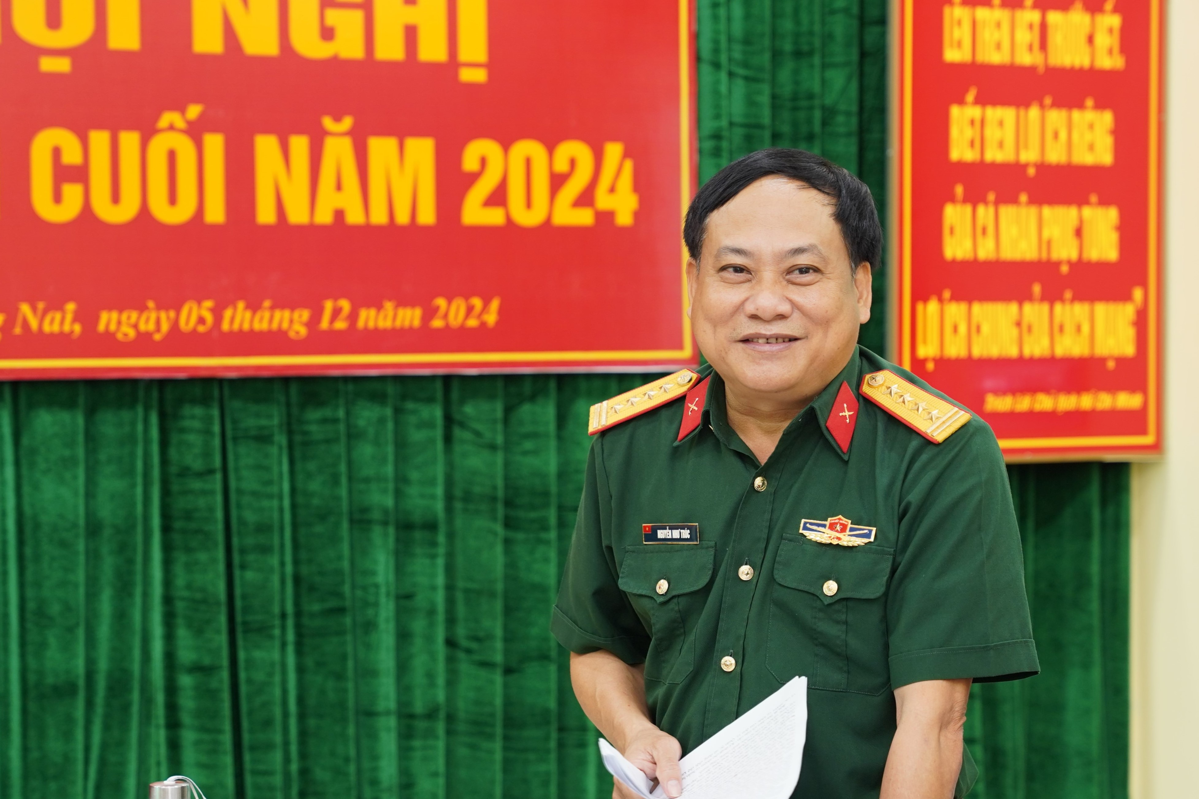 Đại tá Nguyễn Như Trúc, Phó chủ nhiệm Chính trị Quân khu phát biểu chỉ đạo hội nghị.