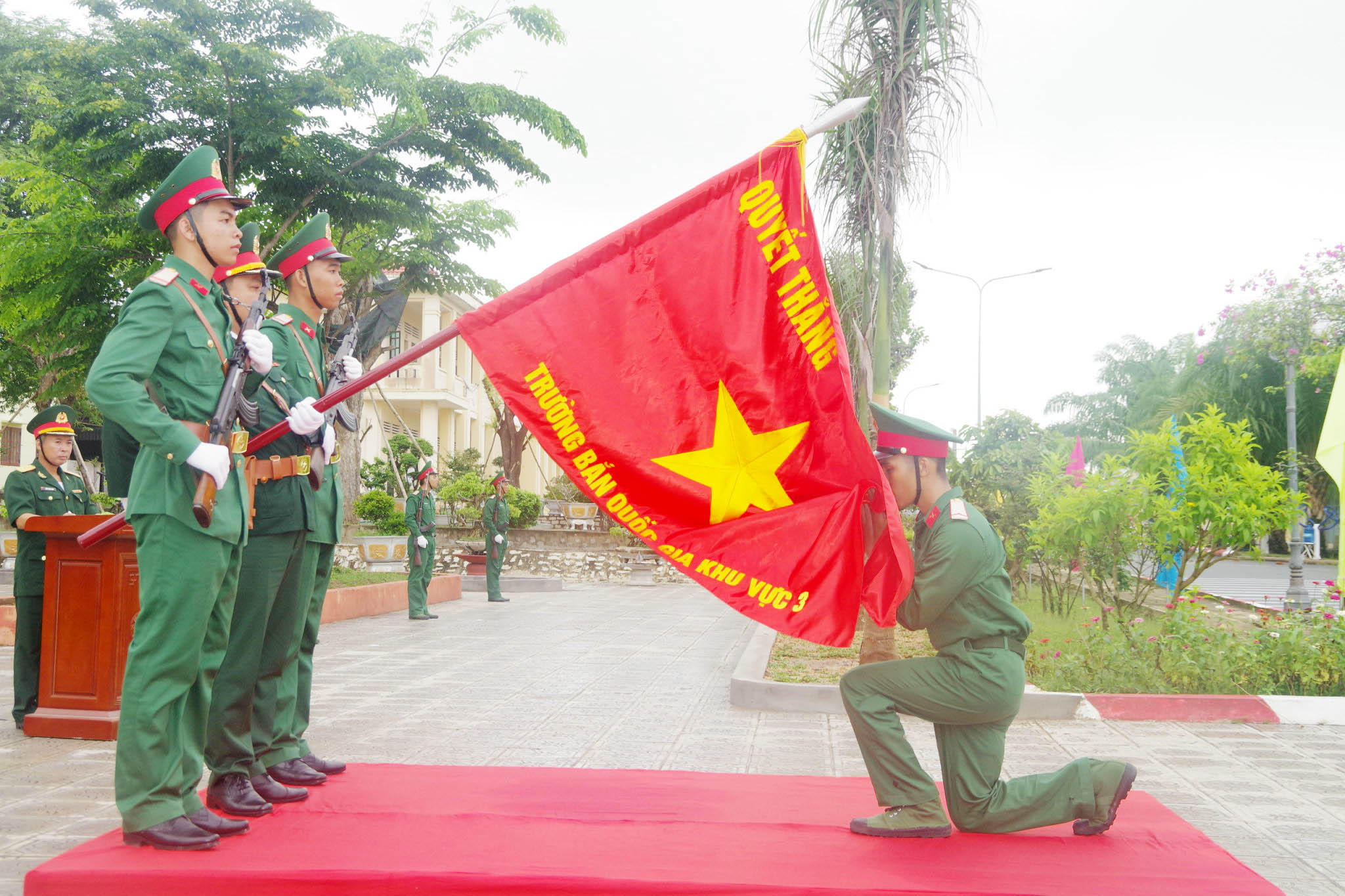 Chiến sĩ mới tuyên thệ dưới Quân kỳ Quyết thắng.