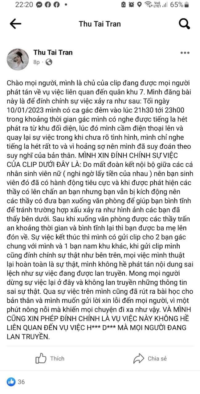 Sinh viên T.T.T.T đính chính thông tin sự việc sau khi video bị cắt ghép lan truyền trên mạng xã hội.