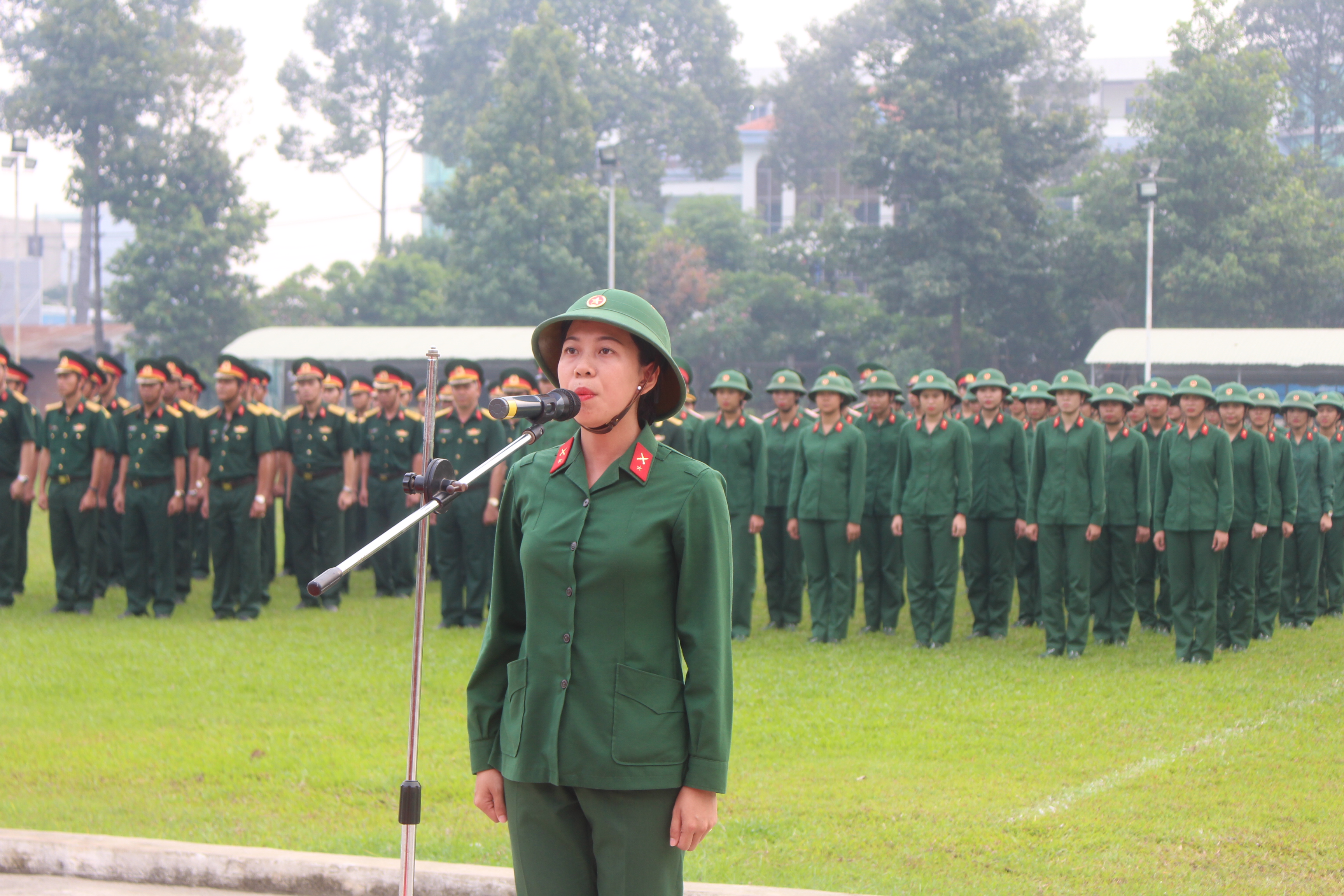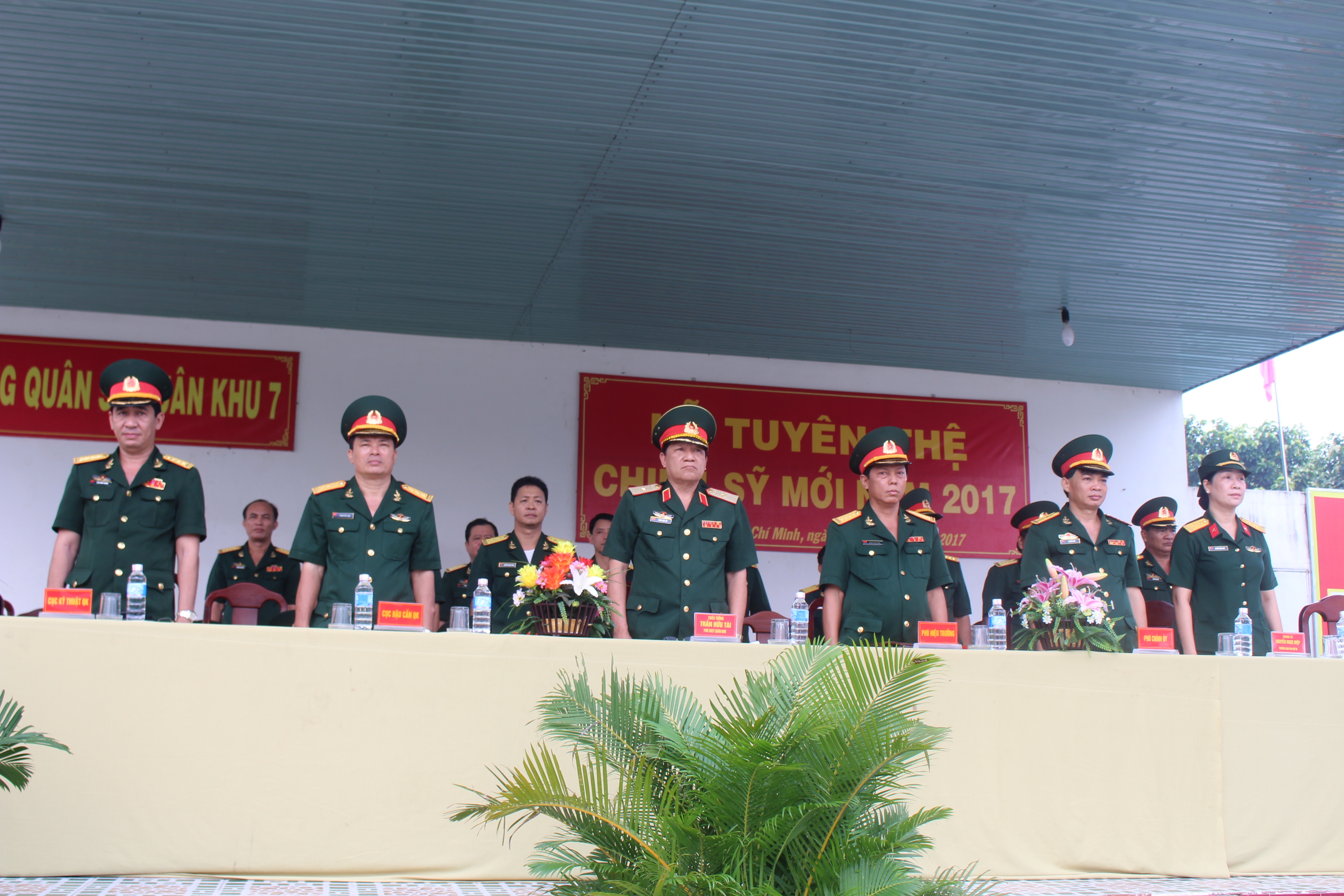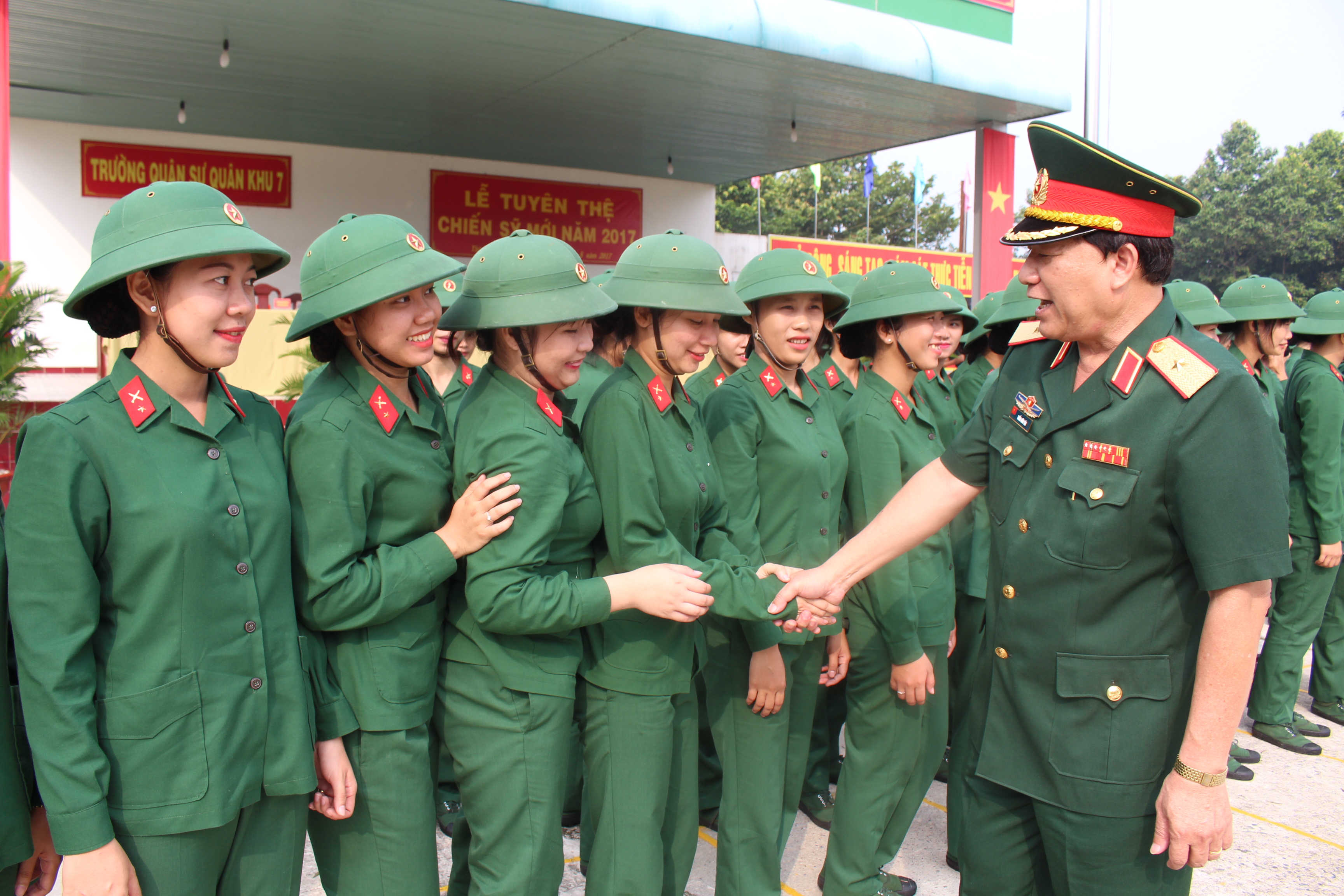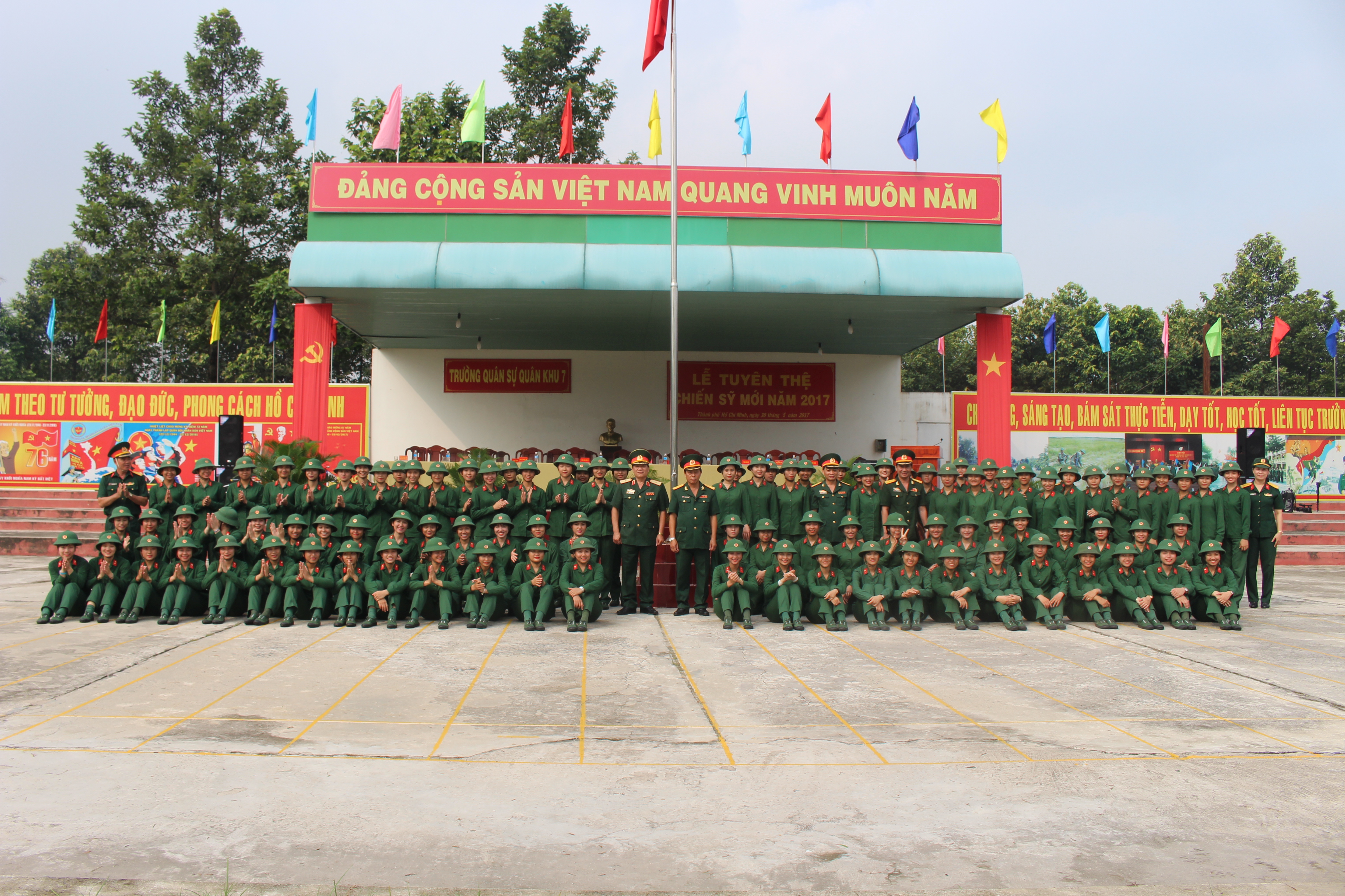 (QK7 Online) Sau 3 tháng huấn luyện, sáng nay, ngày 30/5/2017, Ban Giám hiệu Trường Quân sự Quân khu 7 tổ chức lễ tuyên thệ cho 100 chiến sĩ mới nữ năm 2017. Tới dự có Thiếu tướng Trần Hữu Tài, Phó Chủ nhiệm chính trị Quân khu; các cơ quan Quân khu; Ban Giám hiệu nhà trường.