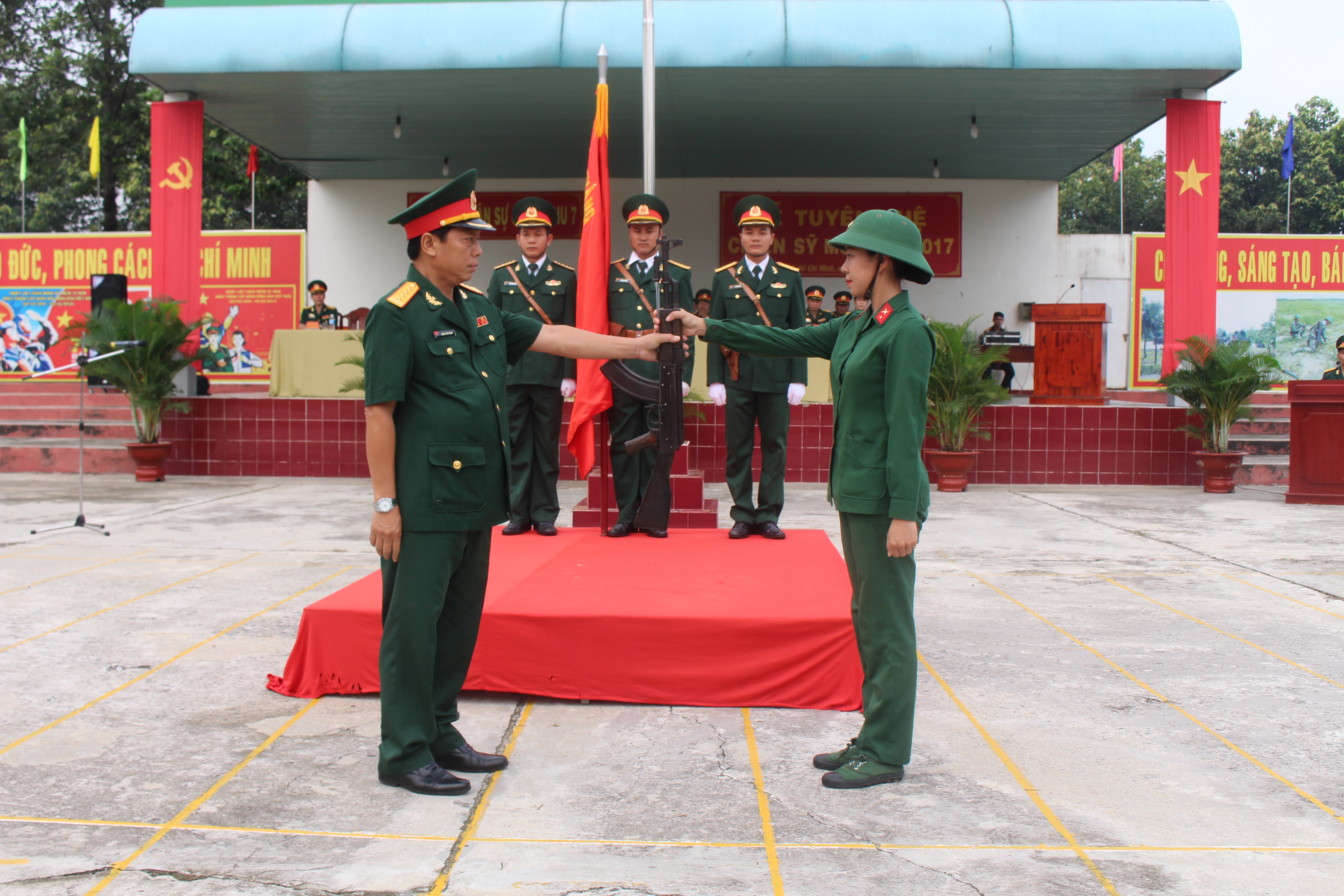 Trường Quân sự Quân khu 7. Tổ chức lễ tuyên thệ huấn luyện chiến sĩ mới năm 2017.
