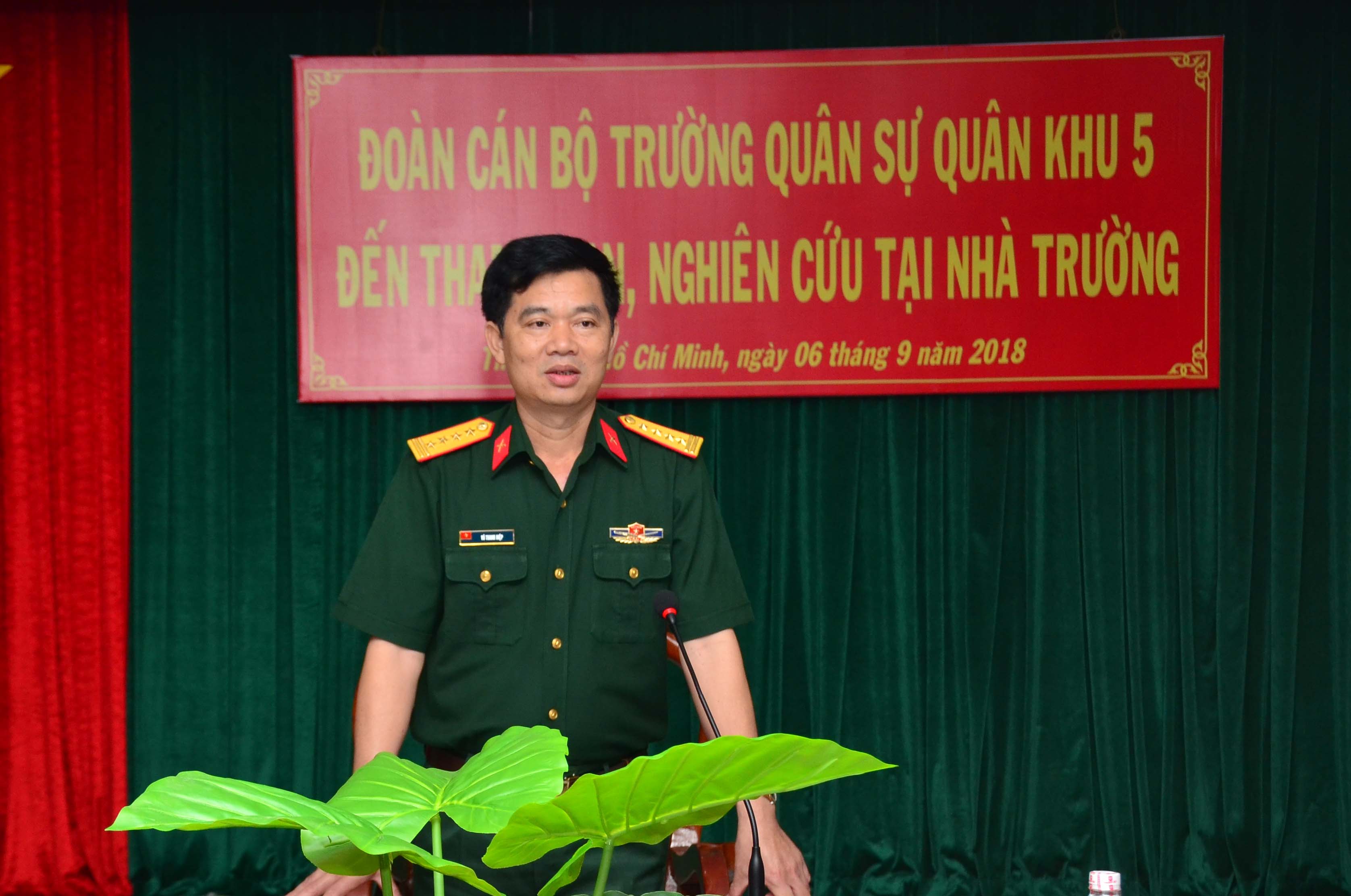 Đại tá Vũ Thanh Hiệp, Phó Tham mưu trưởng Quân khu 7 đánh giá cao buổi làm việc giữa hai nhà trường, từ những việc làm cụ thể cũng như thực hiện các mô hình hay, cách làm tốt mà hai bên đã trao đổi để bảo đảm nâng cao chất lượng giáo dục - đào tạo, xây dựng nhà trường chính quy theo hướng gọn, mạnh, hợp lý hệ thống nhà trường quân đội, trong đó có Trường Quân sự Quân khu 7 và Trường Quân sự Quân khu 5.