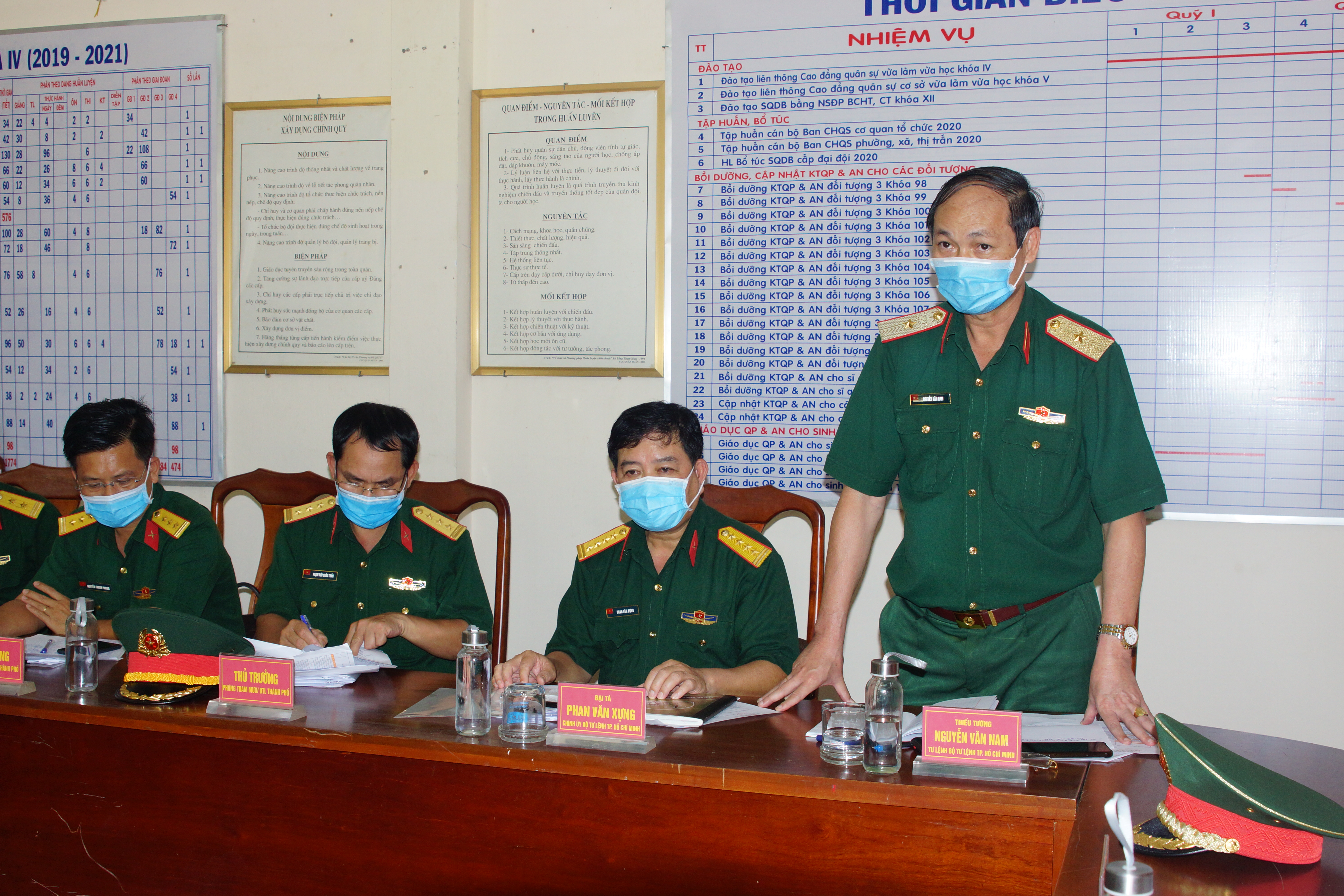 Đồng chí Chính ủy yêu cầu: Trong thời gian tới, dịch bệnh sẽ còn diễn biến khó lường, chính vì vậy, đây là nhiệm vụ số 1 trọng tâm cấp bách hiện nay. Ban Giám hiệu phải xác định tốt nhiệm vụ và giáo dục tuyên truyền thật tốt về nhiệm vụ cho cán bộ, chiến sĩ cũng như lực lượng phục vụ ở khu cách ly về phòng, chống dịch bệnh Covid-19. Thực hiện nghiêm ngặt theo qui định, không được chủ quan, hình thức, không được để lây nhiễm cho nhân viên y tế và lây nhiễm trong đơn vị.