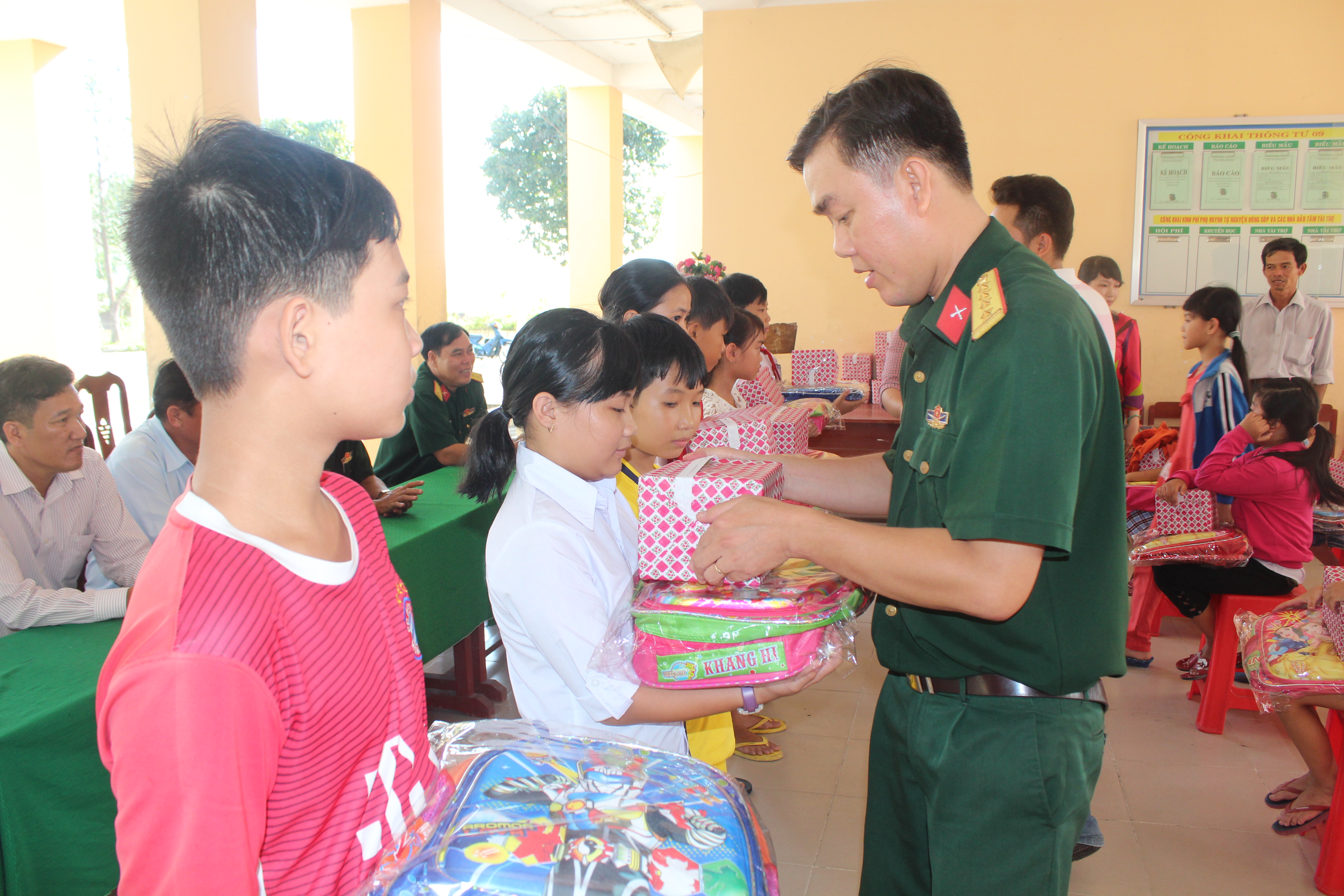 Trường Quân sự tỉnh Long An: Trao tặng 30 suất quà cho học sinh nghèo xã Thanh Phú.
