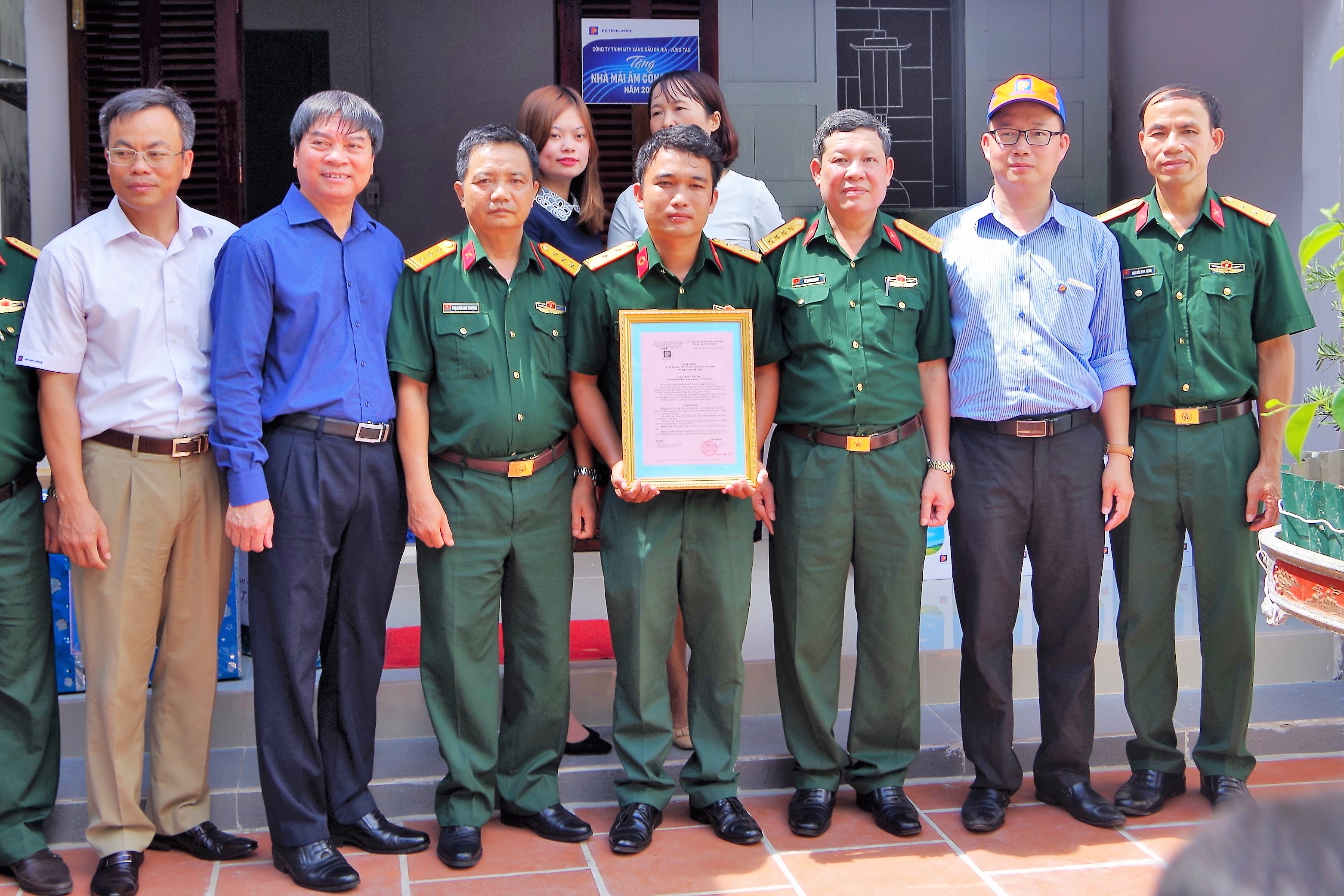 Đại diện Petrolimex Vũng Tàu, Phó Giám đốc, Chủ tịch Công đoàn Công ty Lê Như Quy đã trao quyết định xây nhà “Mái ấm công đoàn” và tặng quà cho hộ gia đình trung úy Hoàng Văn Công. Đồng thời đã động viên gia đình cố gắng khắc phục mọi khó khăn, hoàn thành tốt nhiệm vụ; vươn lên trong cuộc sống, đoàn kết với bà con lối xóm, thực hiện tốt đường lối chủ trương của Đảng, chính sách pháp luật của Nhà nước, quy định của địa phương.