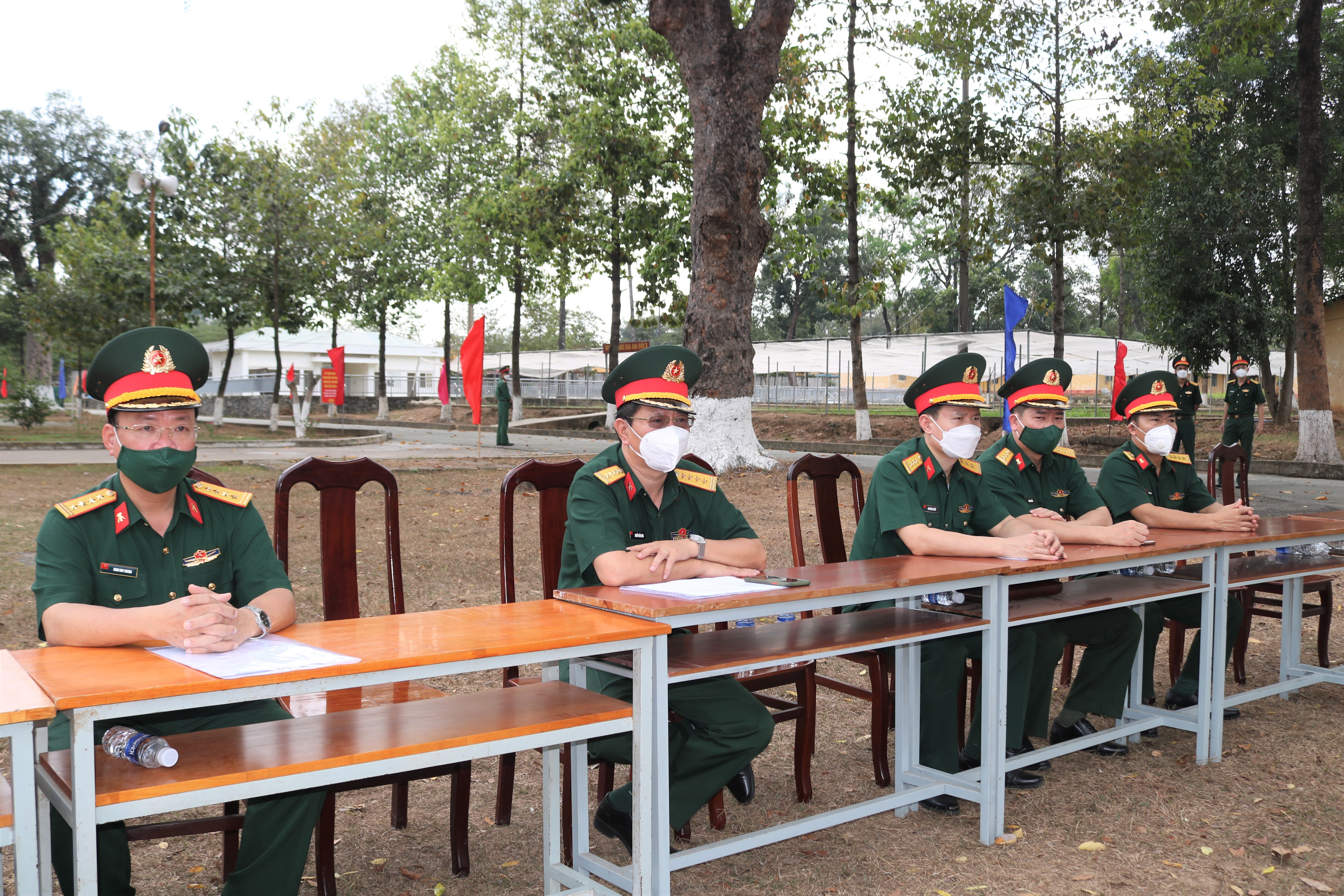 Thủ trưởng Tổng Cục Kỹ thuật và Ban Giám hiệu Nhà trường dự lễ đón nhận chiến sĩ mới.