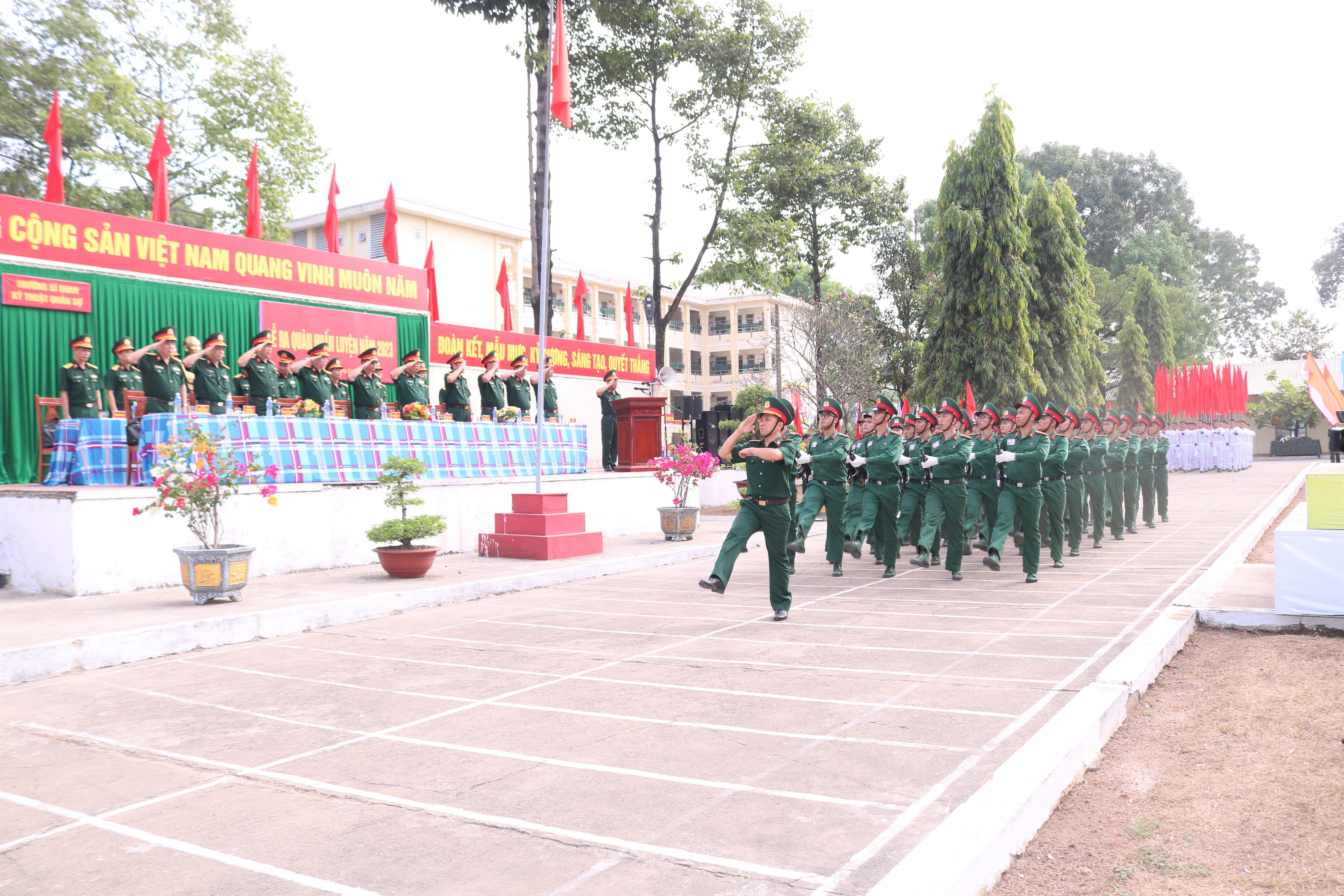 Cán bộ, chiến sĩ Nhà trường tham dự lễ ra quân huấn luyện năm 2023.