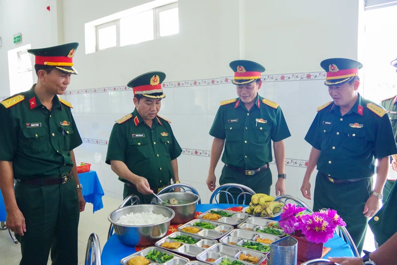 Đoàn công tác Trường Sĩ quan Lục quân 2 tham quan nhà ăn của Sư đoàn 5.
