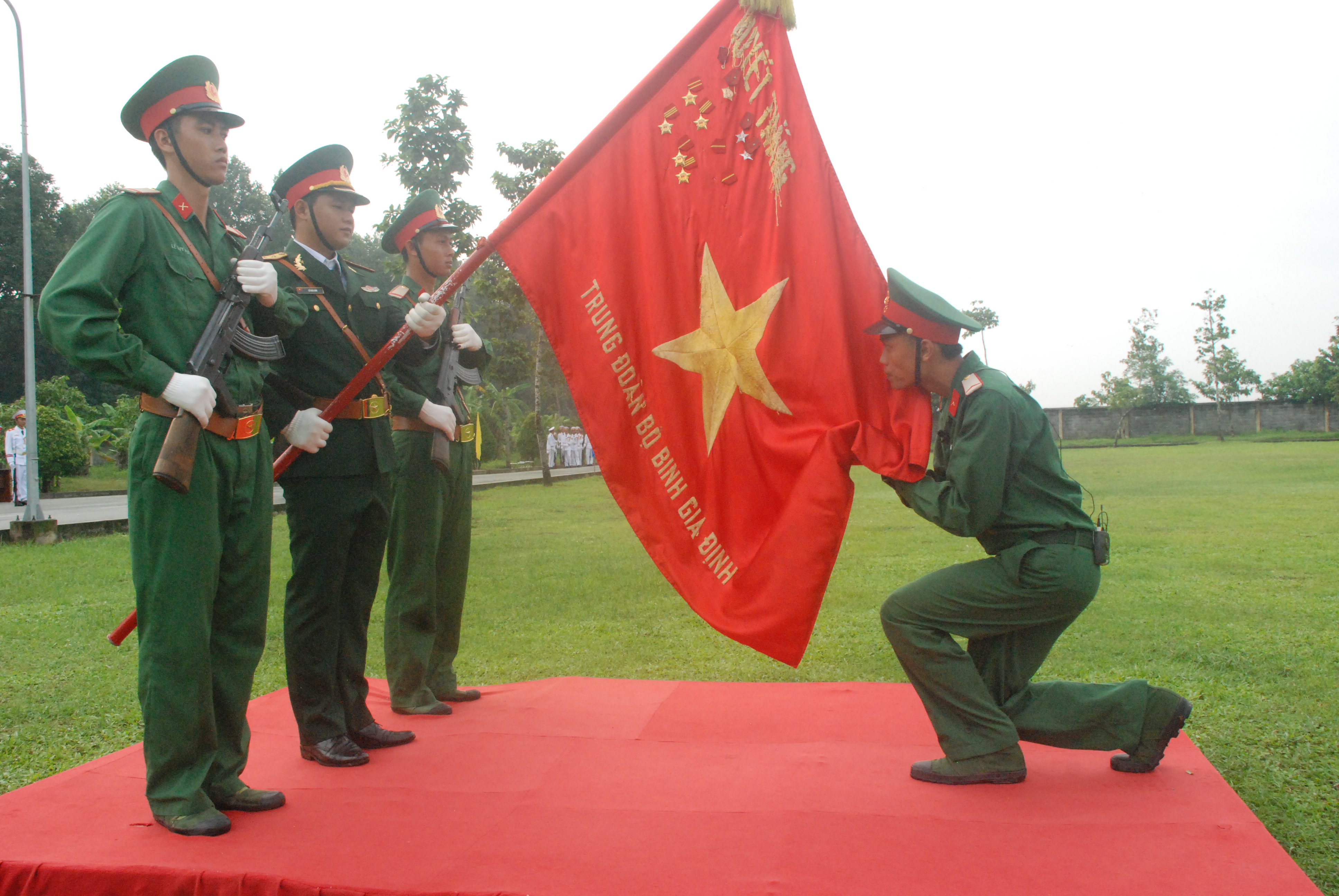 Chiến sĩ Trung đoàn Gia Định, BTL thành phố Hồ Chí Minh tuyên thệ trước Quân kỳ quyết thắng. Ảnh: X.H