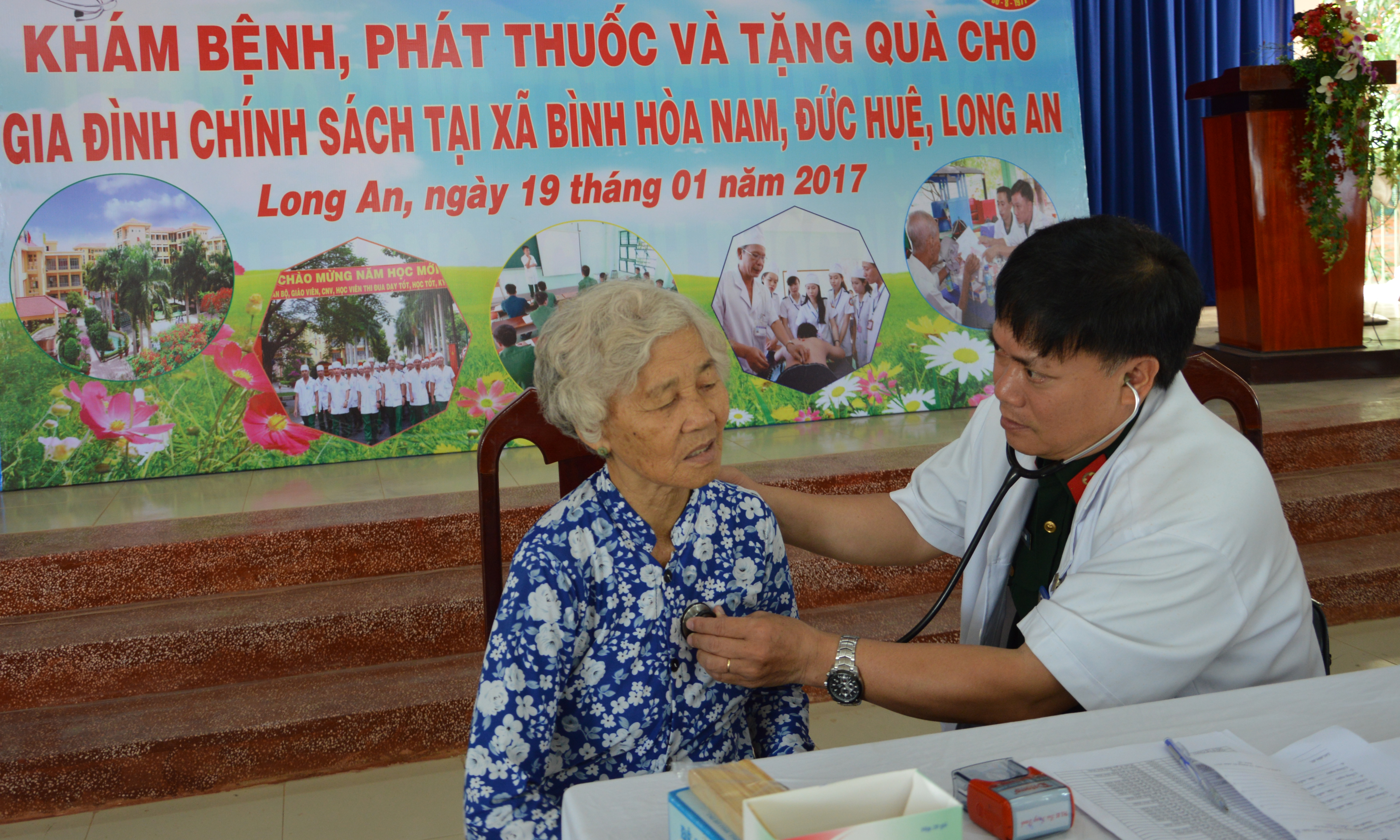Thầy Bùi Trọng Danh khám bệnh cho người dân.